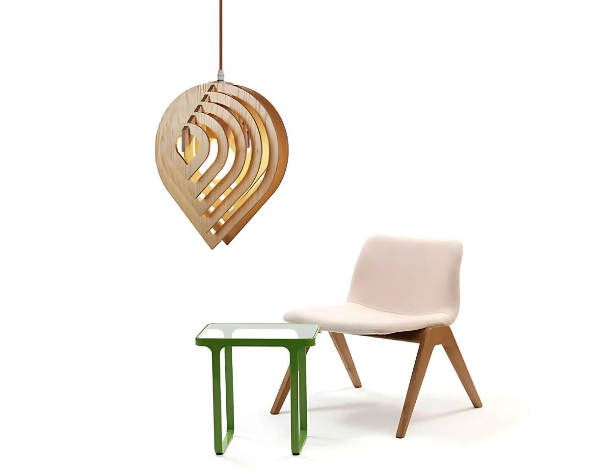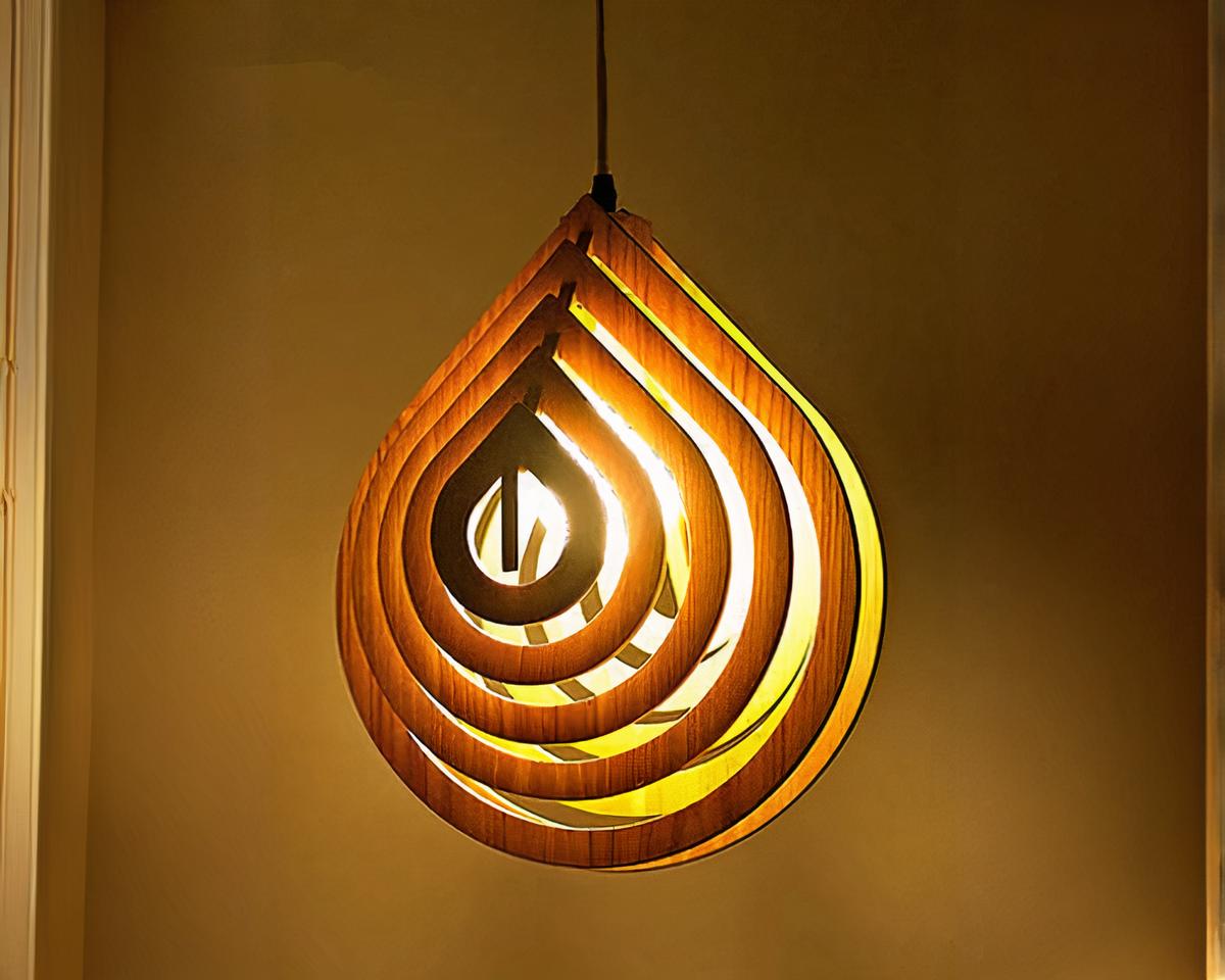 Cette suspension en bois, évoquant une goutte d'eau, est une véritable œuvre d'art. Le design en forme de goutte d'eau enrichit tout espace de vie en combinant la chaleur du bois avec une forme fluide et moderne. Elle est idéale pour créer un point focal élégant au-dessus de votre table de salle à manger ou dans votre hall d'entrée.