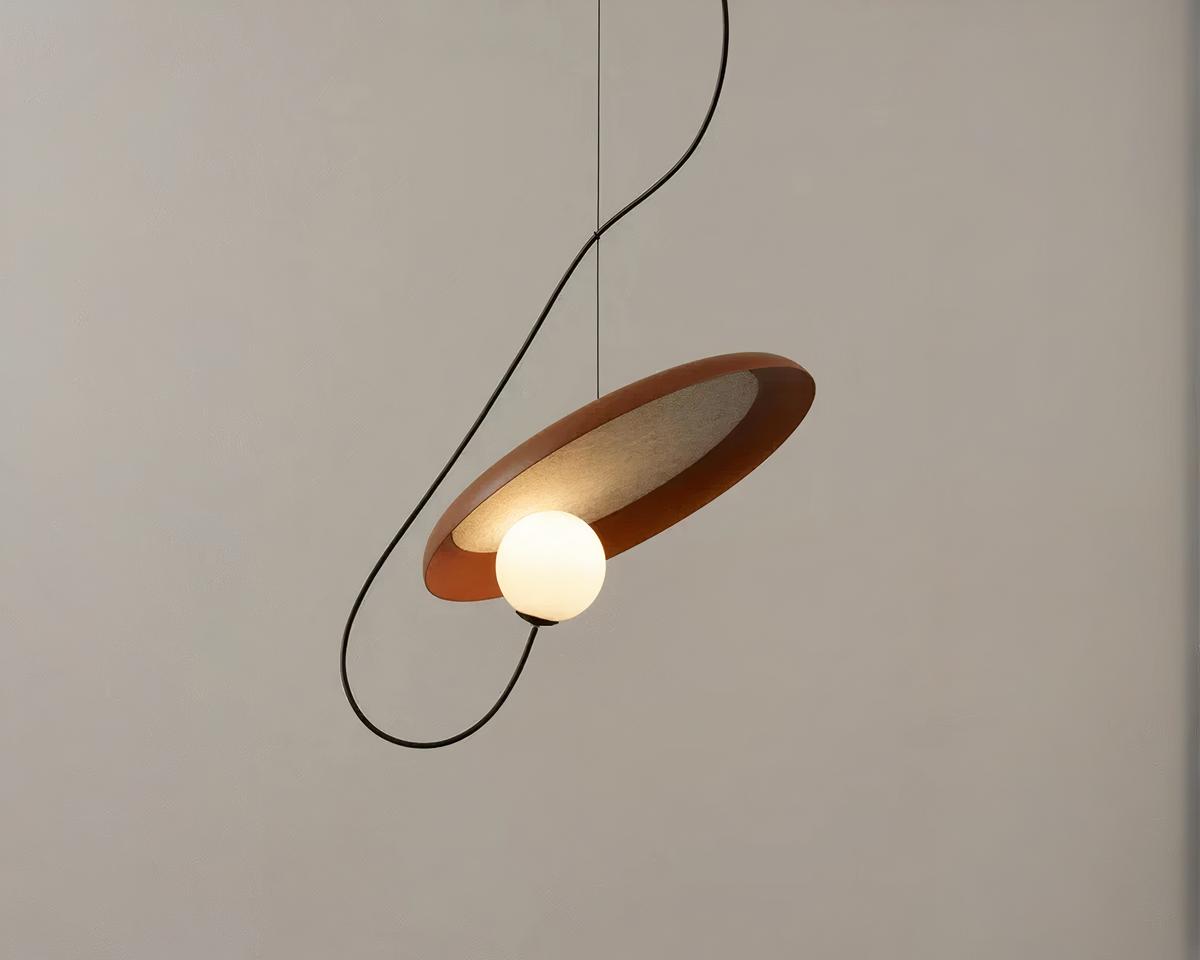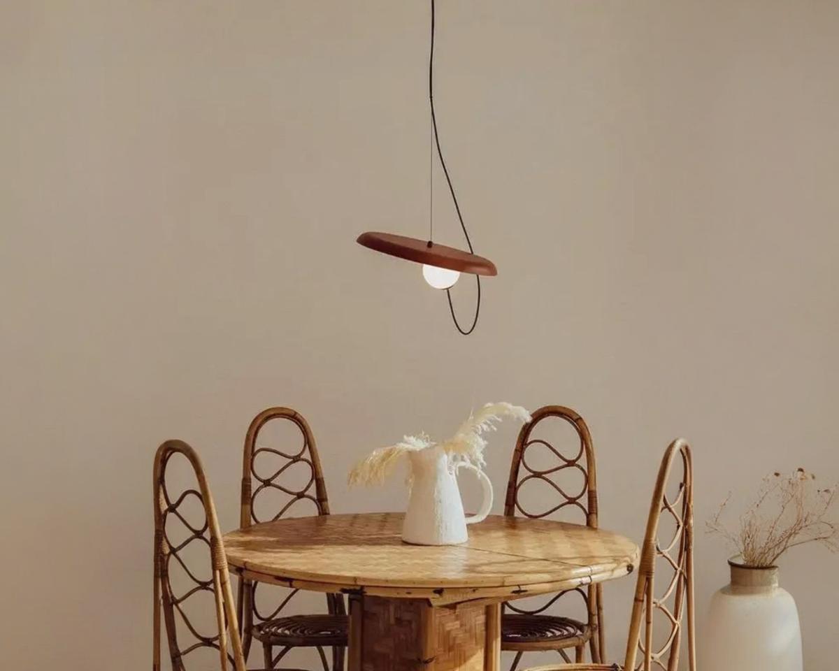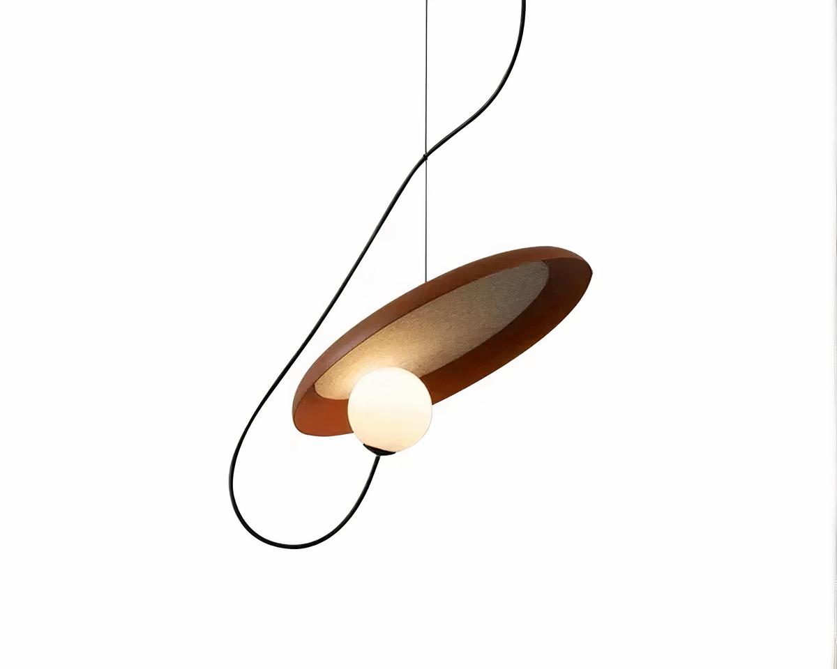 Cet éclairage n'est pas seulement fonctionnel, il est aussi un véritable objet d'art. La suspension circulaire marron se marie harmonieusement avec les décors modernes, ajoutant une touche d'élégance et de sophistication. Elle s'intègre parfaitement dans les espaces contemporains qui valorisent les formes simples et les couleurs profondes.