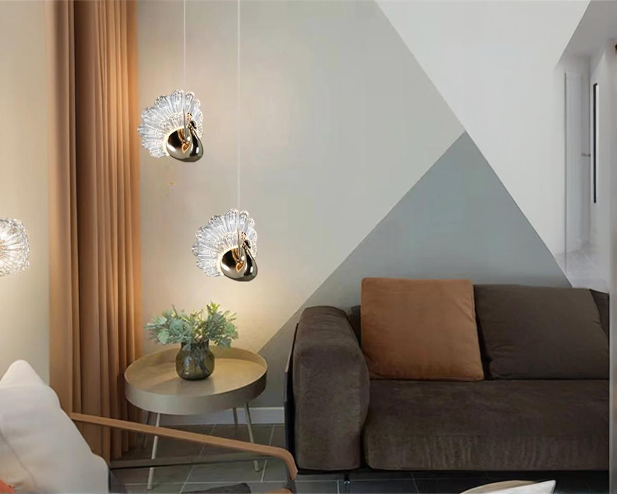 Admirez la splendeur de cette suspension qui capture l'essence majestueuse du paon dans un design moderne. Les détails en blanc et or brillent avec élégance, offrant une lumière accueillante qui embellit chaque coin de la pièce. Idéale pour les foyers cherchant un point focal artistique et moderne.