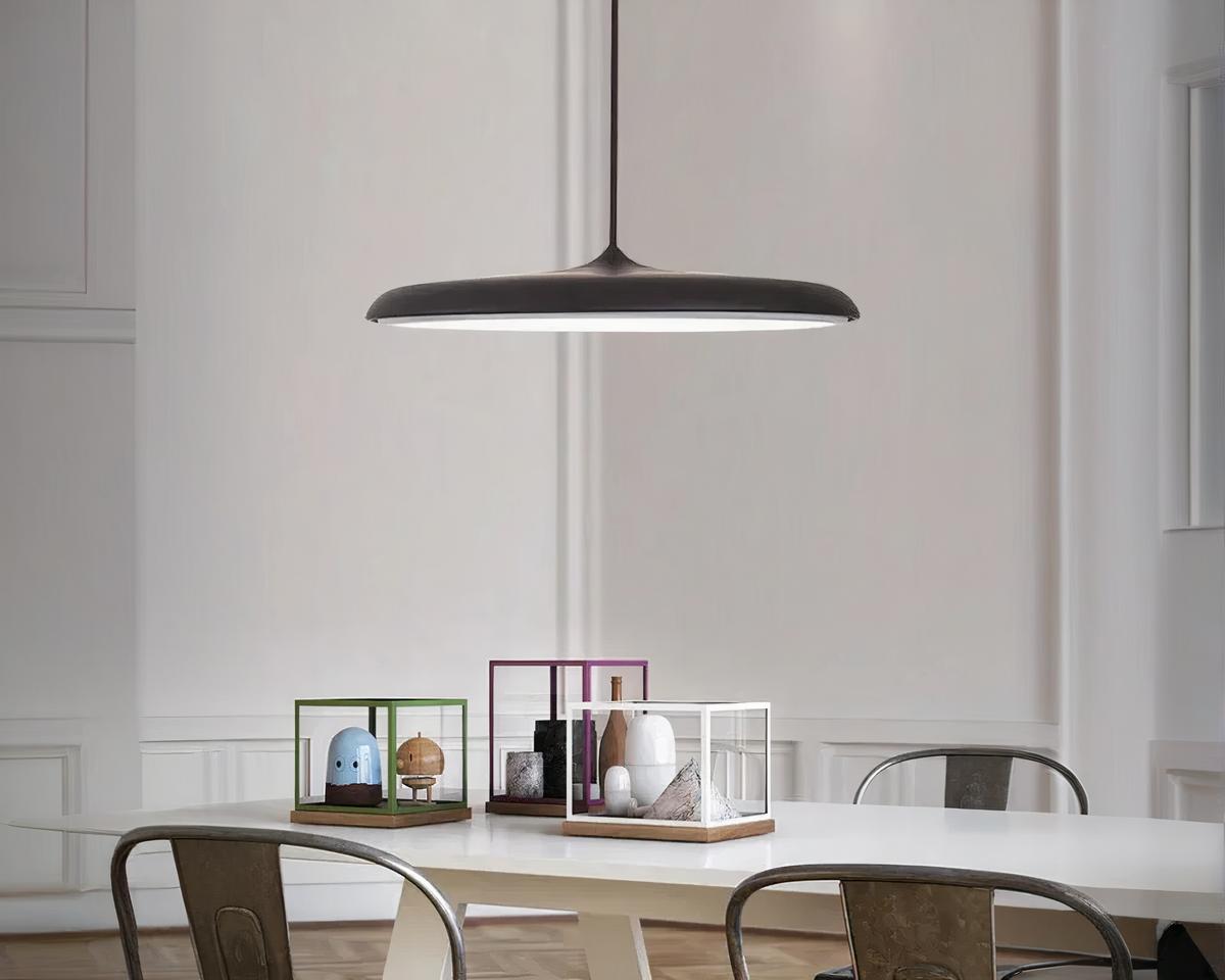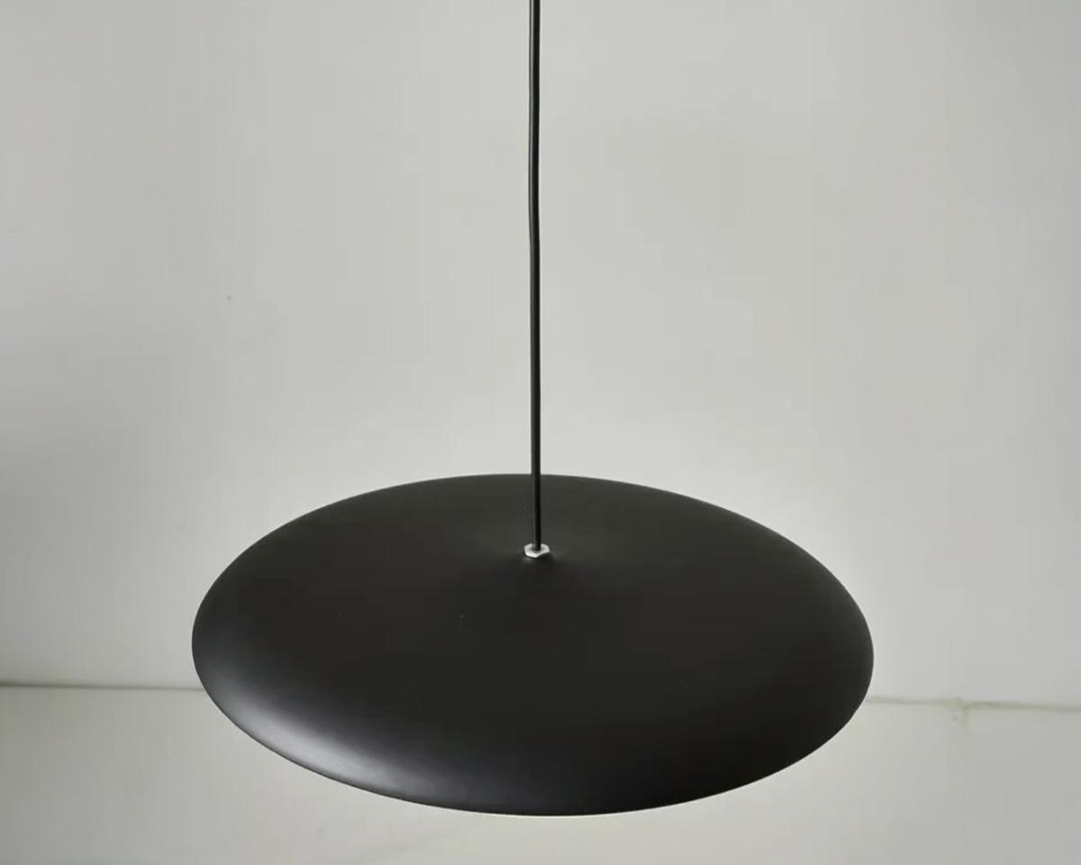 Embrassez la simplicité avec cette suspension noire en aluminium, dont la forme plate rappelle une soucoupe. Parfaite pour les espaces contemporains, elle offre un éclairage homogène sans surcharger visuellement l'espace, tout en apportant une touche de modernité discrète, mais impressionnante.