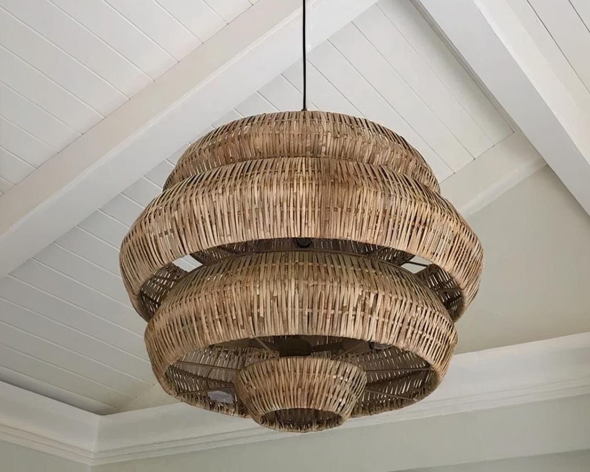 Cette suspension ne se contente pas d'illuminer ; elle innove en matière de design intérieur. Sa structure en rotin tissée de manière créative évoque un sens artistique moderne, parfait pour ceux qui recherchent à combiner fonctionnalité et esthétique dans leurs décors. Elle est spécialement conçue pour ceux qui apprécient les pièces uniques qui parlent d'eux-mêmes.