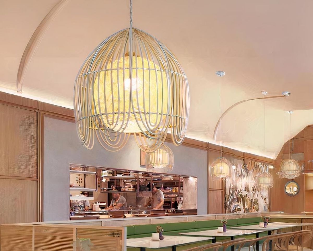 Cette suspension ne se contente pas d'éclairer ; elle décore. Avec son design en rotin beige et blanc, elle apporte une légèreté visuelle et une touche de modernité. Idéale pour les salons, les entrées ou les zones de repas, elle enrichit l'ambiance avec sa présence subtile, mais impressionnante.