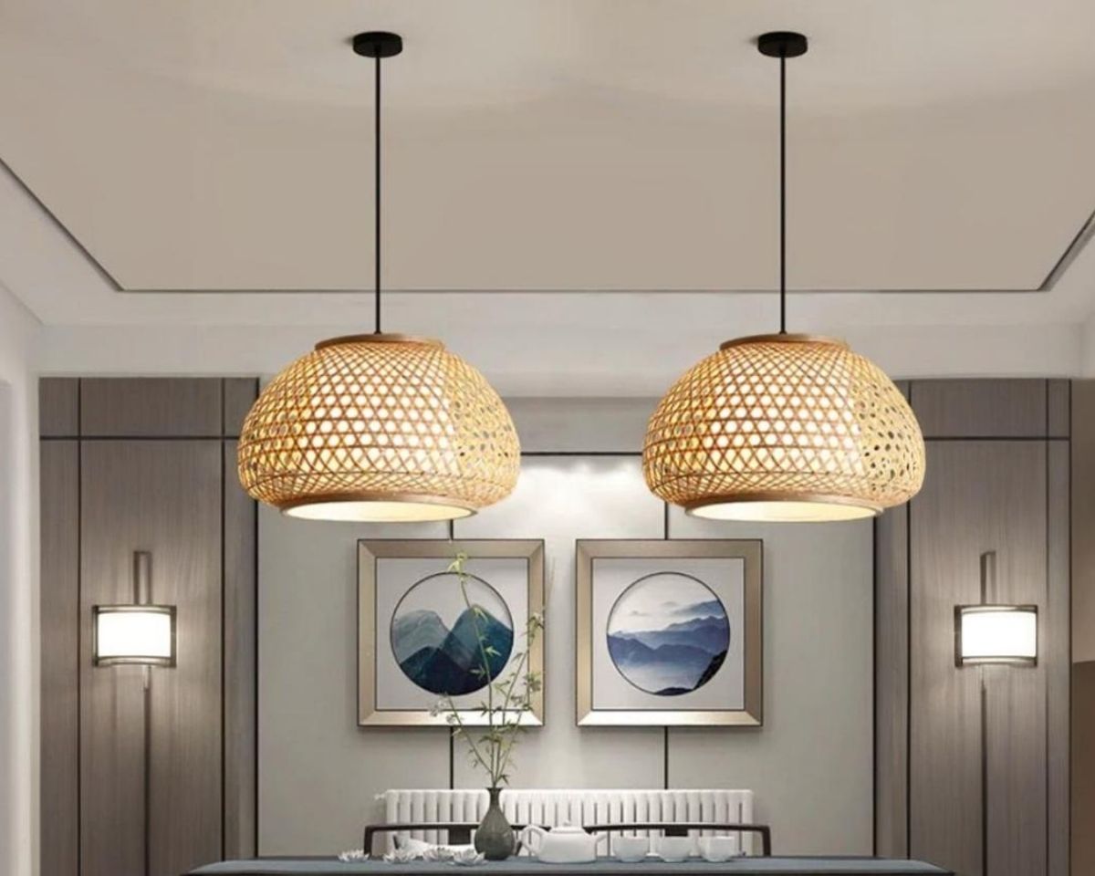 Cette suspension combine le meilleur des mondes avec son design moderne et l'utilisation de matériaux traditionnels. La structure en bois et métal assure une durabilité, tandis que le rotin tissé apporte une touche décorative subtile, mais impactante, transformant tout espace en une œuvre d'art fonctionnelle.