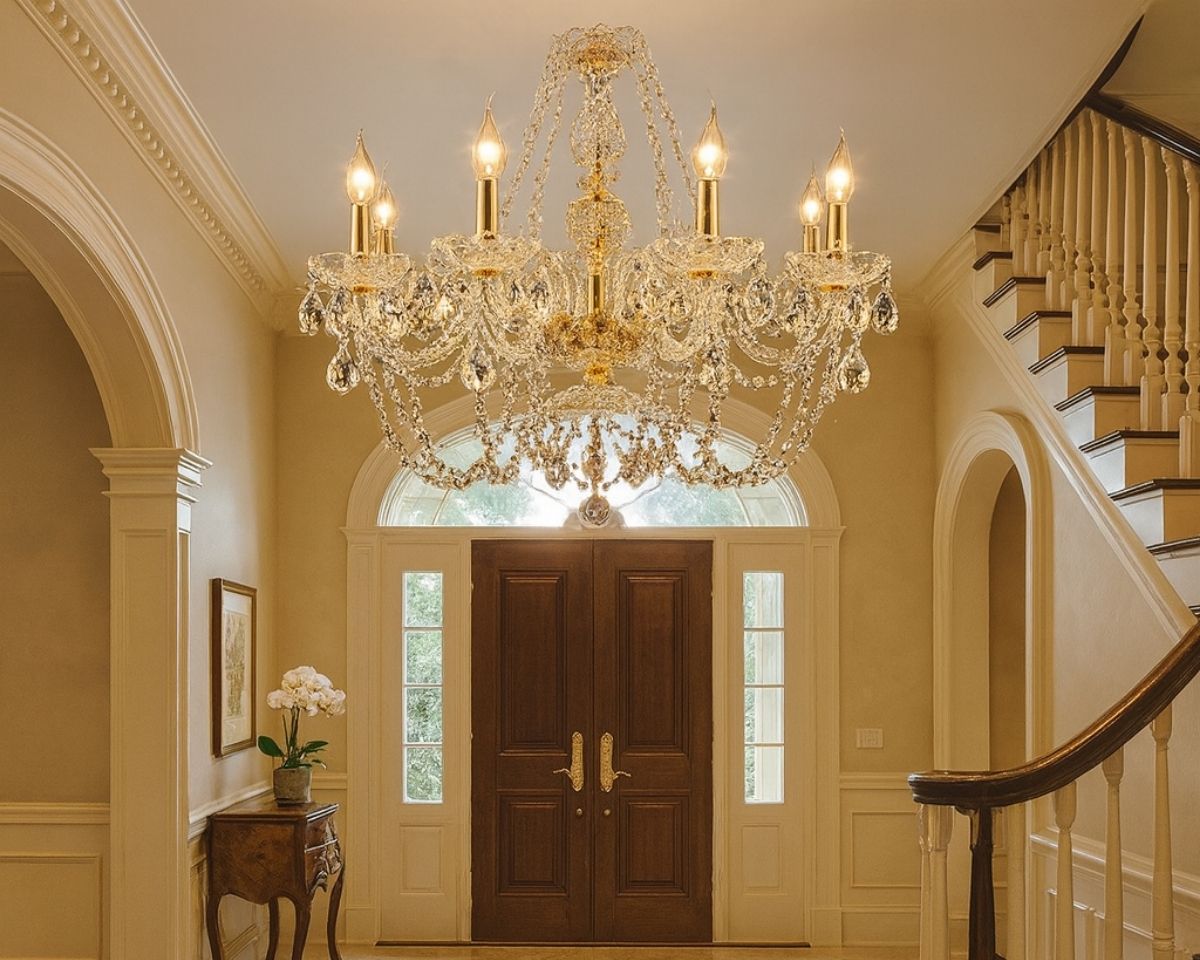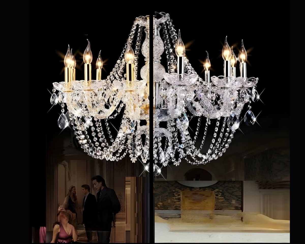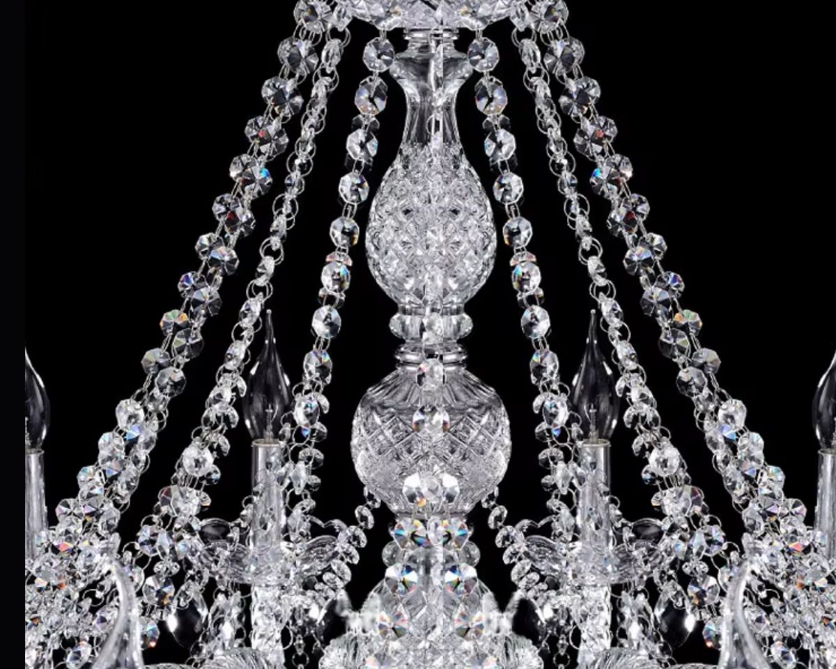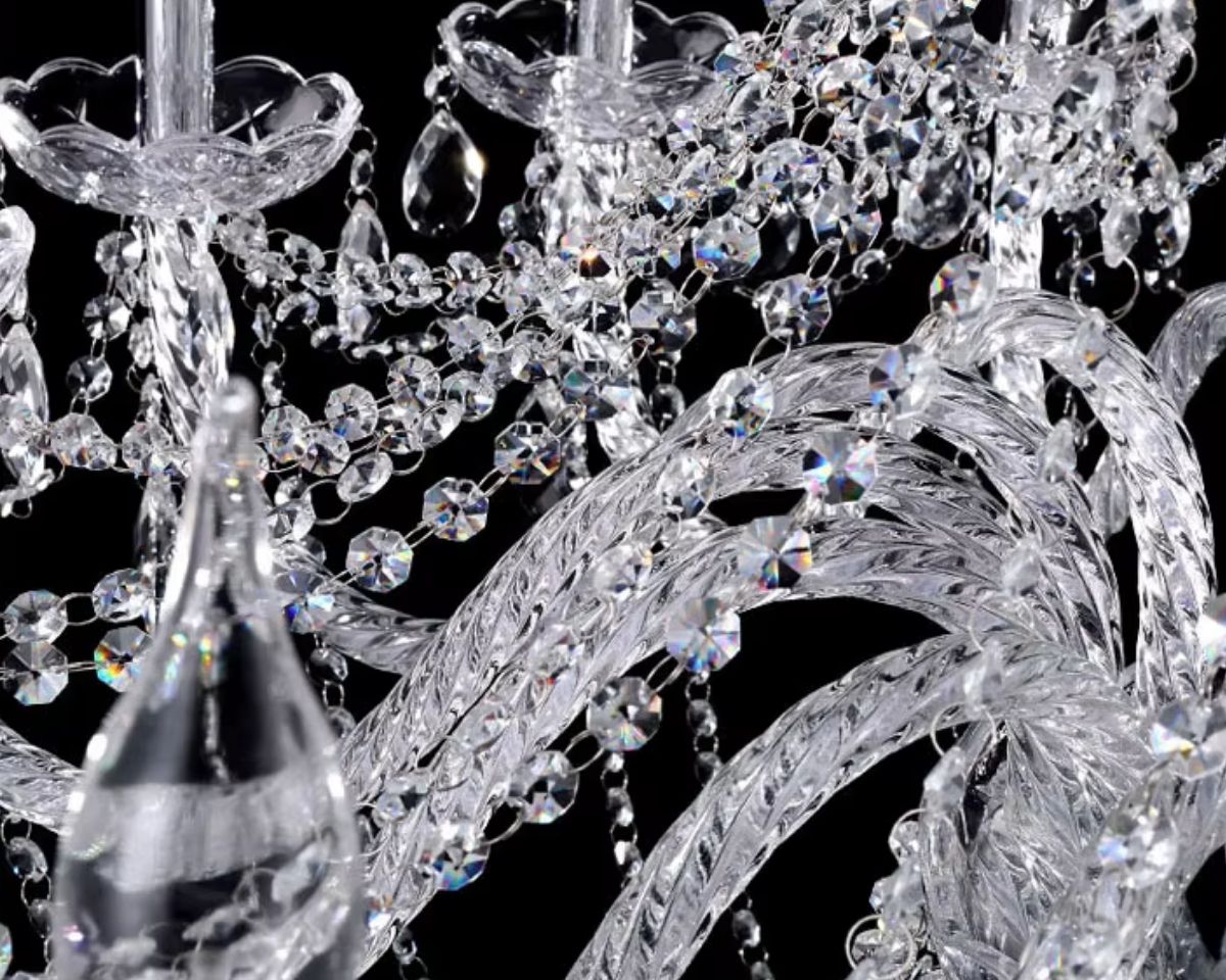 Cette suspension baroque en cristal est votre alliée élégance ! Son design raffiné s'inspire des grandes époques aristocratiques, tandis que ses cristaux authentiques diffusent des reflets enchanteurs sur vos murs.