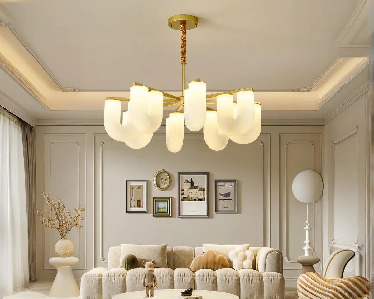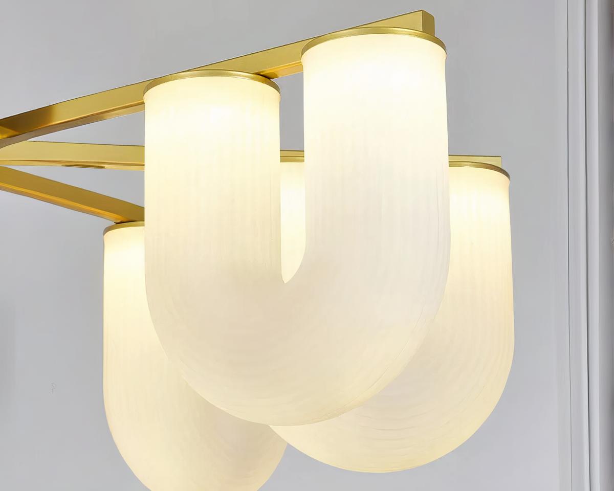 Plongez dans un univers de design avec cette suspension aux multiples têtes en U, où l'acrylique se mêle au fer doré pour créer un effet visuel saisissant. Parfaite pour les grands espaces, chaque tête est positionnée de manière à optimiser la diffusion de la lumière tout en ajoutant un caractère artistique et moderne à votre décor.
