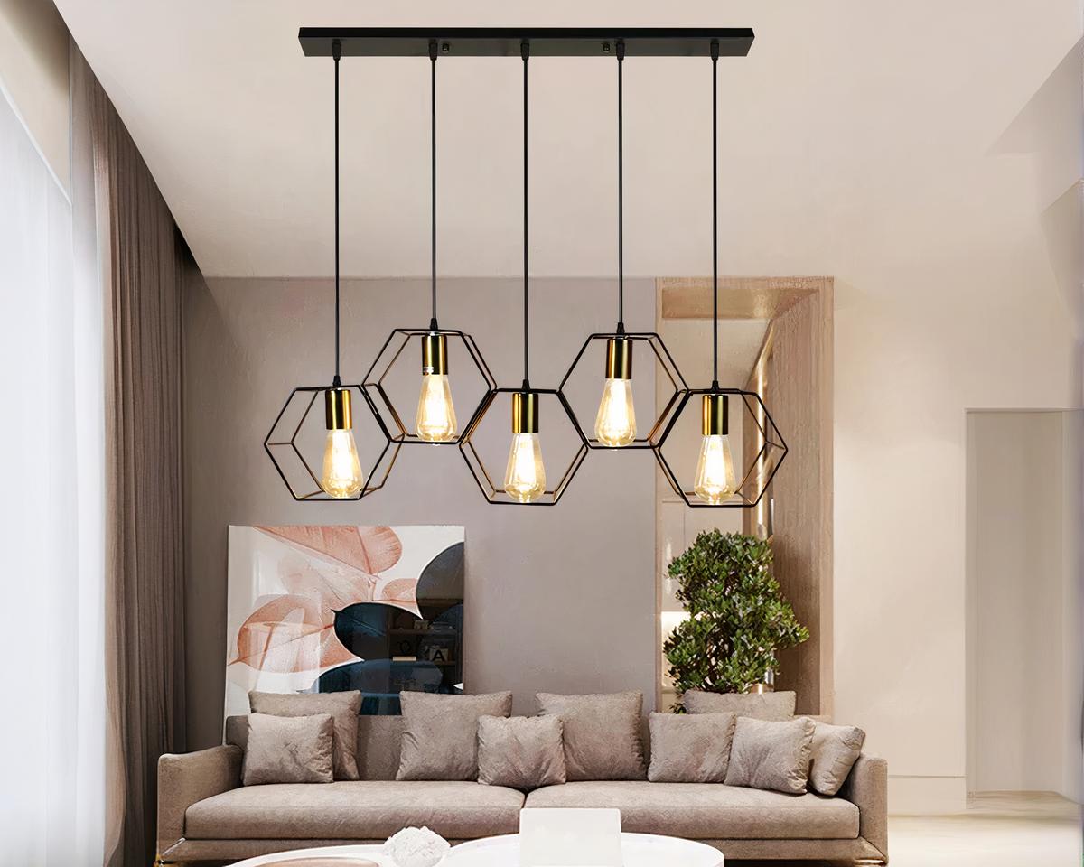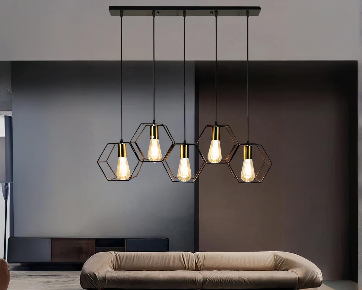 Cette suspension multiple design et moderne au style industriel marie parfaitement le noir et le doré pour un contraste visuel saisissant. Ce mélange de couleurs confère au luminaire une allure chic et sophistiquée, idéale pour sublimer un intérieur moderne ou industriel. Chaque détail est pensé pour offrir un look unique et raffiné à votre espace.