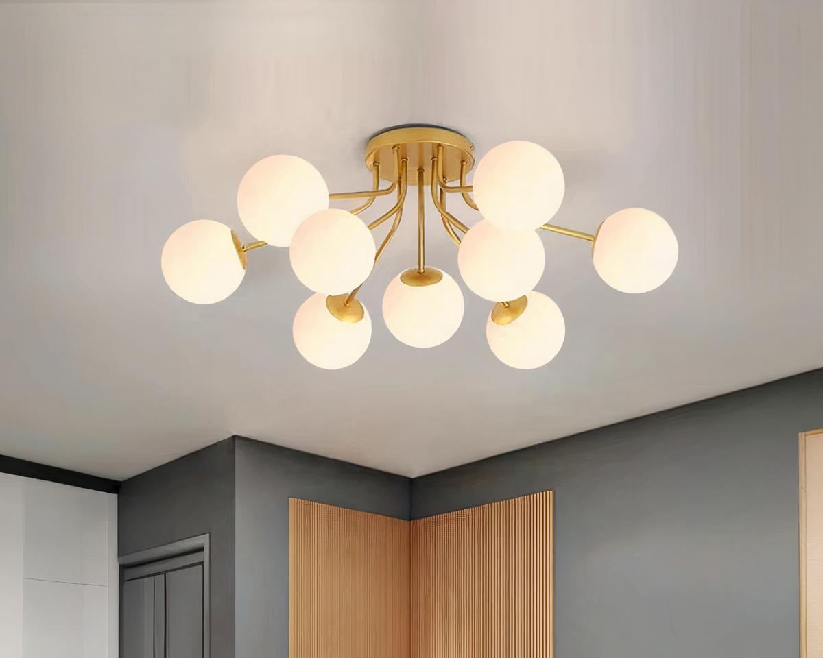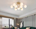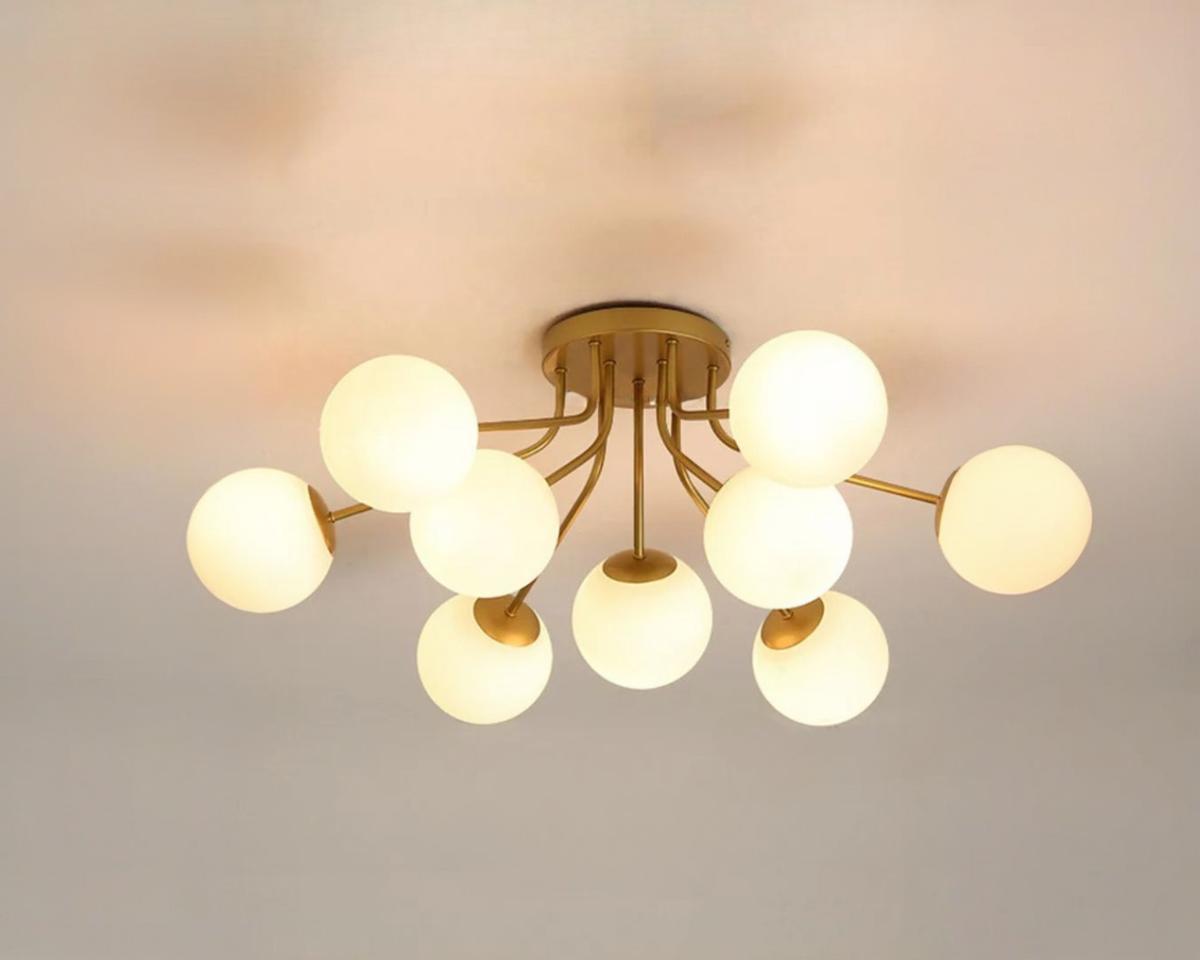 Élevez l'esthétique de votre intérieur avec cette suspension nordique composée de neuf boules en verre doré. Ce design, à la fois simple et opulent, distribue une lumière chaleureuse à travers les pièces, parfaite pour les grands espaces qui requièrent un éclairage à la fois fonctionnel et artistique.