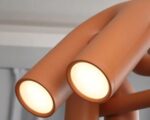 Cette suspension à têtes multiples en forme de U apporte une modernité raffinée à toute pièce. Sa structure en fer en terracotta crée un contraste saisissant avec les intérieurs contemporains ou industriels, offrant à la fois esthétique et efficacité lumineuse.