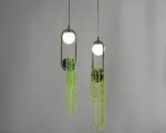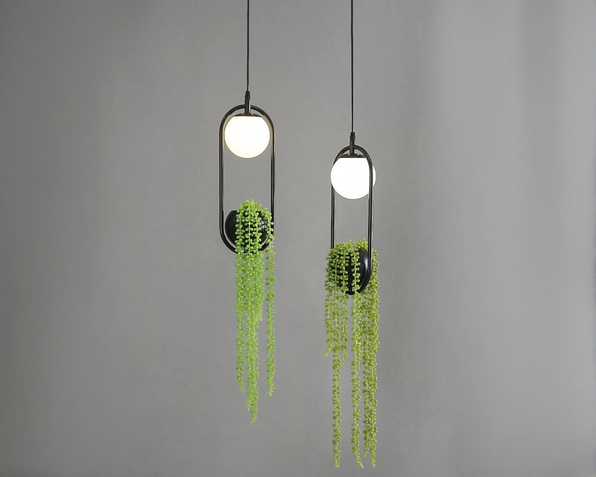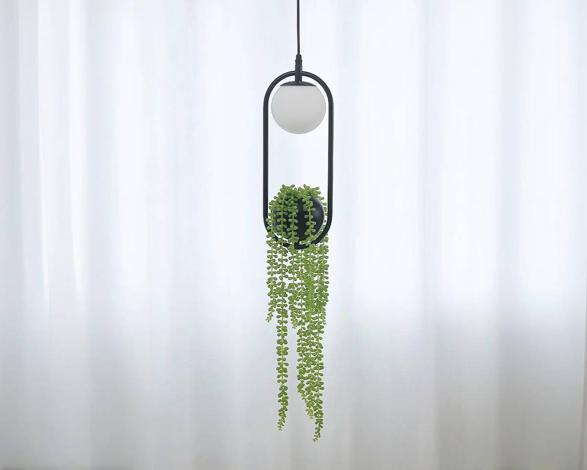 Cette suspension innovante mêle le charme du design nordique à la praticité moderne. Avec ses deux boules métalliques et l'intégration de fausses plantes, elle offre une solution décorative et lumineuse idéale pour les espaces minimalistes qui cherchent à incorporer des éléments naturels sans l'entretien des plantes vivantes.