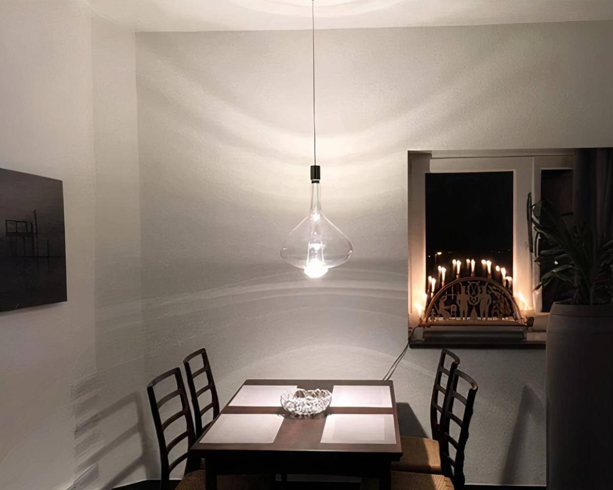 Cette suspension transparente incarne la tendance moderne avec son design en verre et fer. Parfaite pour un intérieur contemporain, elle diffuse une lumière qui amplifie l'espace et la luminosité, rendant chaque pièce plus accueillante et stylée. Son look transparent s'adapte à tout décor, enrichissant l'ambiance sans l'alourdir.
