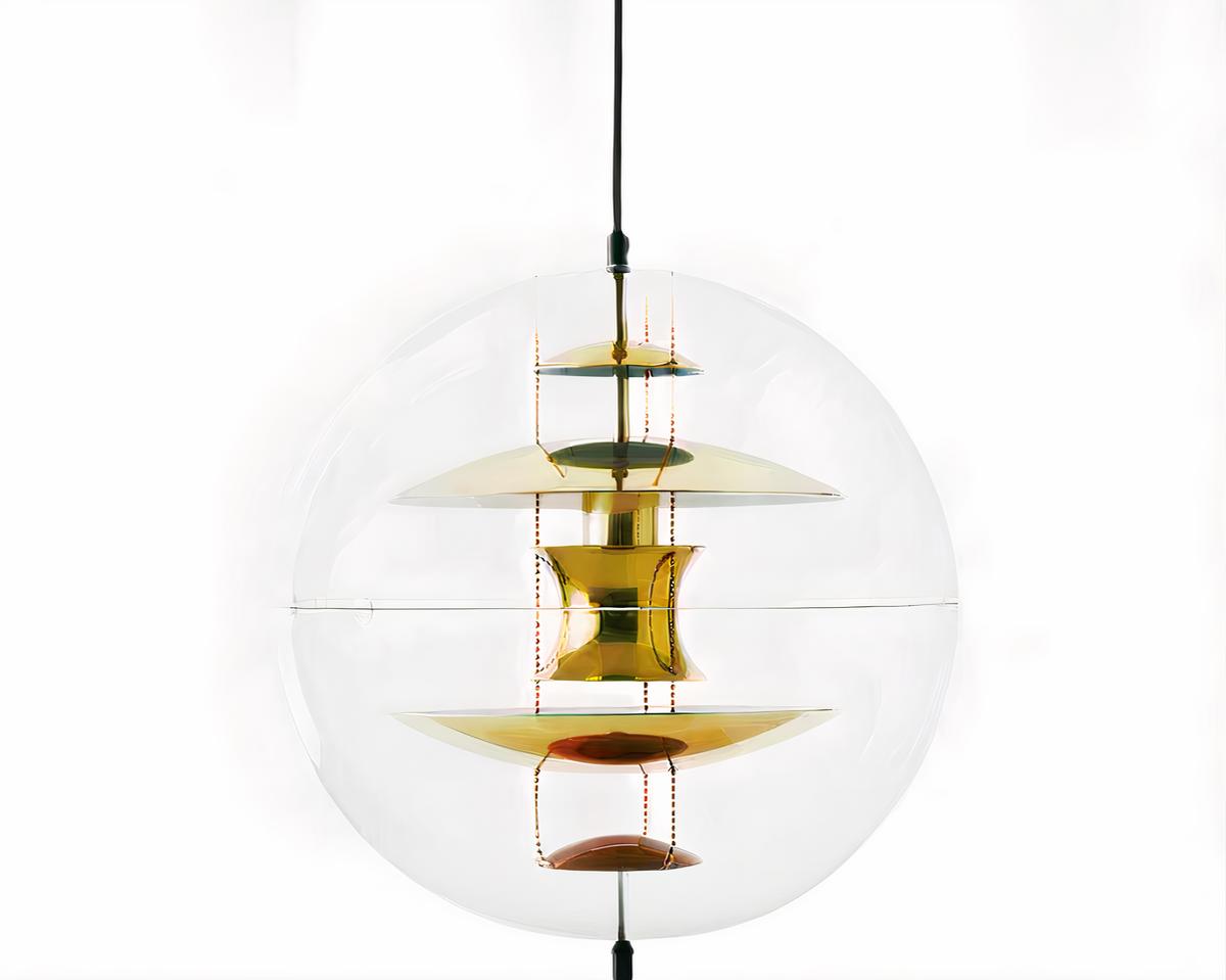 Le design de la suspension globe élégante et moderne au design innovant se distingue par son approche unique et sophistiquée. Son globe en verre transparent dévoile un intérieur doré qui reflète la lumière de manière exceptionnelle, créant une atmosphère chaleureuse et accueillante. Ce mélange harmonieux de matériaux et de formes en fait un véritable objet d'art, conçu pour captiver les regards et susciter l'admiration.