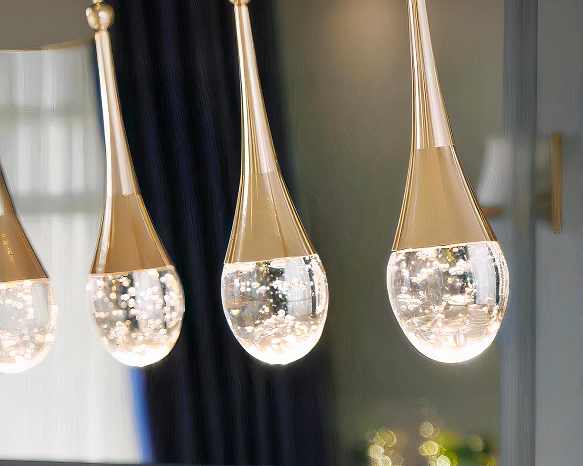 Notre suspension goutte d'eau est conçue pour s’intégrer harmonieusement dans divers styles d’intérieurs. Grâce à son design double et sa finition dorée, elle s’adapte facilement à différents décors, ajoutant une touche d’élégance subtile tout en illuminant vos espaces avec une lumière douce et diffuse.