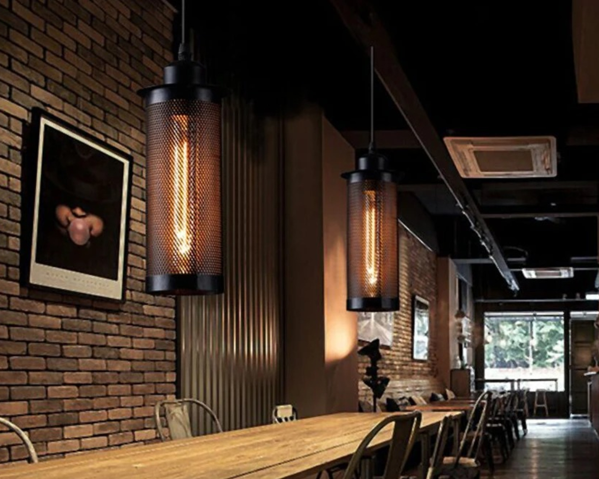 L'aspect tube de cette suspension industrielle en fait un choix idéal pour ceux qui cherchent à combiner fonctionnalité et style. Le design en maille de fer crée un effet visuel captivant, parfait pour focaliser l'attention dans des salles à manger ou des halls d'entrée.