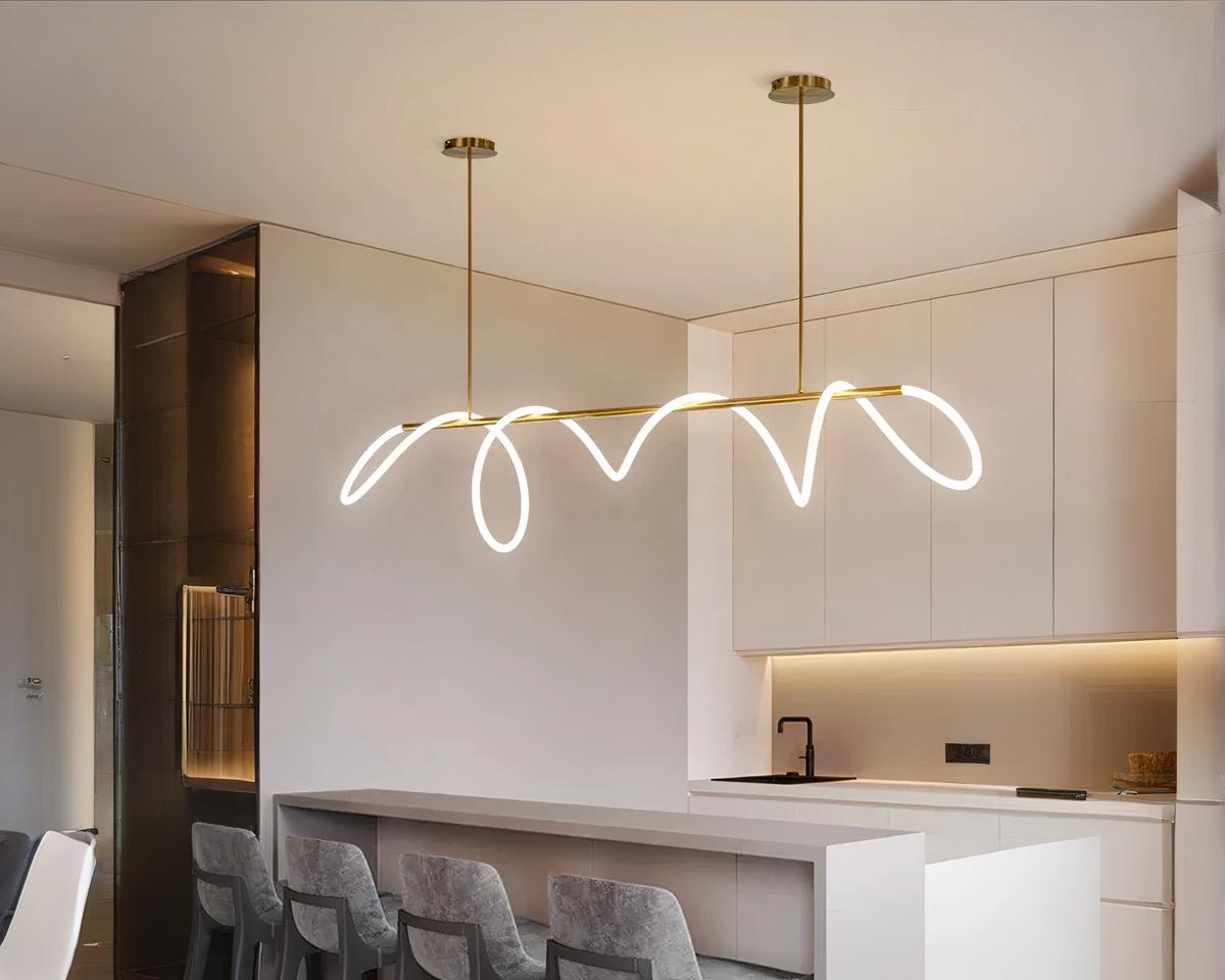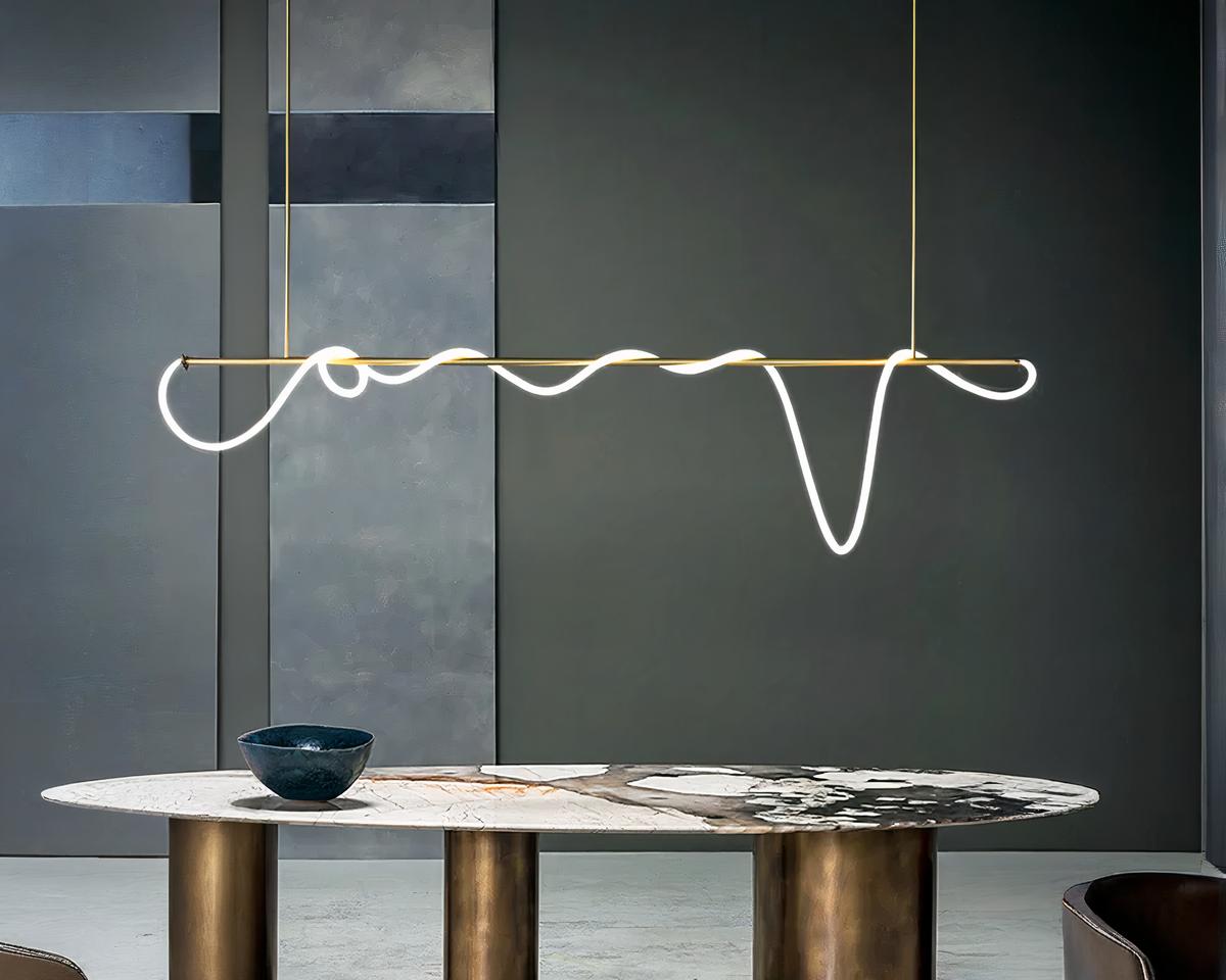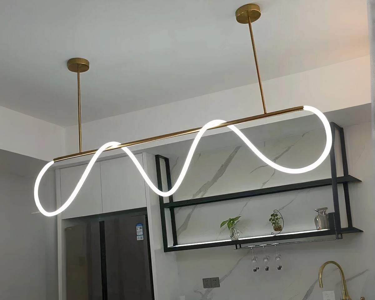 Réinventez l'éclairage de votre salle à manger avec cette suspension originale en fer doré, caractérisée par sa lampe en silicone ondulée. Ce design non conventionnel n'est pas seulement un point focal esthétique, mais aussi une source de lumière efficace, parfaite pour illuminer vos repas tout en ajoutant une touche d'art moderne à votre décoration.