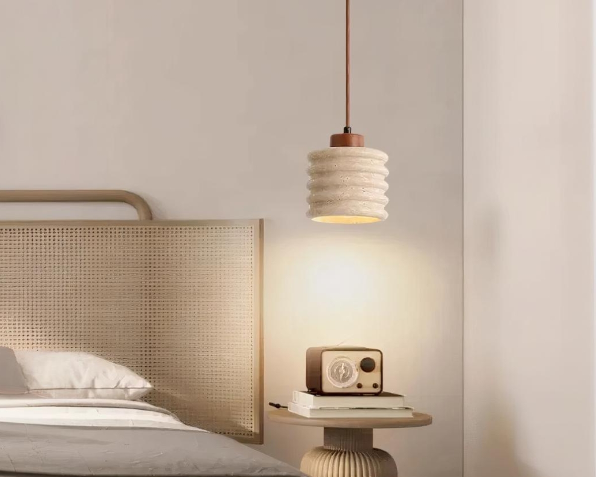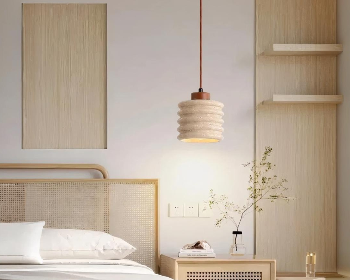 Suspension terre cuite et travertin de style rustique