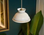 Adoptez un style minimaliste avec cette élégante suspension en céramique blanche et cuivre pour votre salle de bain. La combinaison de matériaux nobles crée un look sophistiqué, tandis que la forme simple et épurée de la lampe garantit une diffusion de lumière optimale, idéale pour se préparer dans une ambiance sereine et stylée.