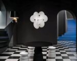 Transformez votre espace avec cette suspension unique, où des chapeaux en tissu blanc s'assemblent en une cascade aérienne de formes amusantes. Idéale pour ceux qui cherchent à incorporer un élément de design inattendu et joyeux dans leur décor, cette pièce marie fantaisie et modernité avec élégance.