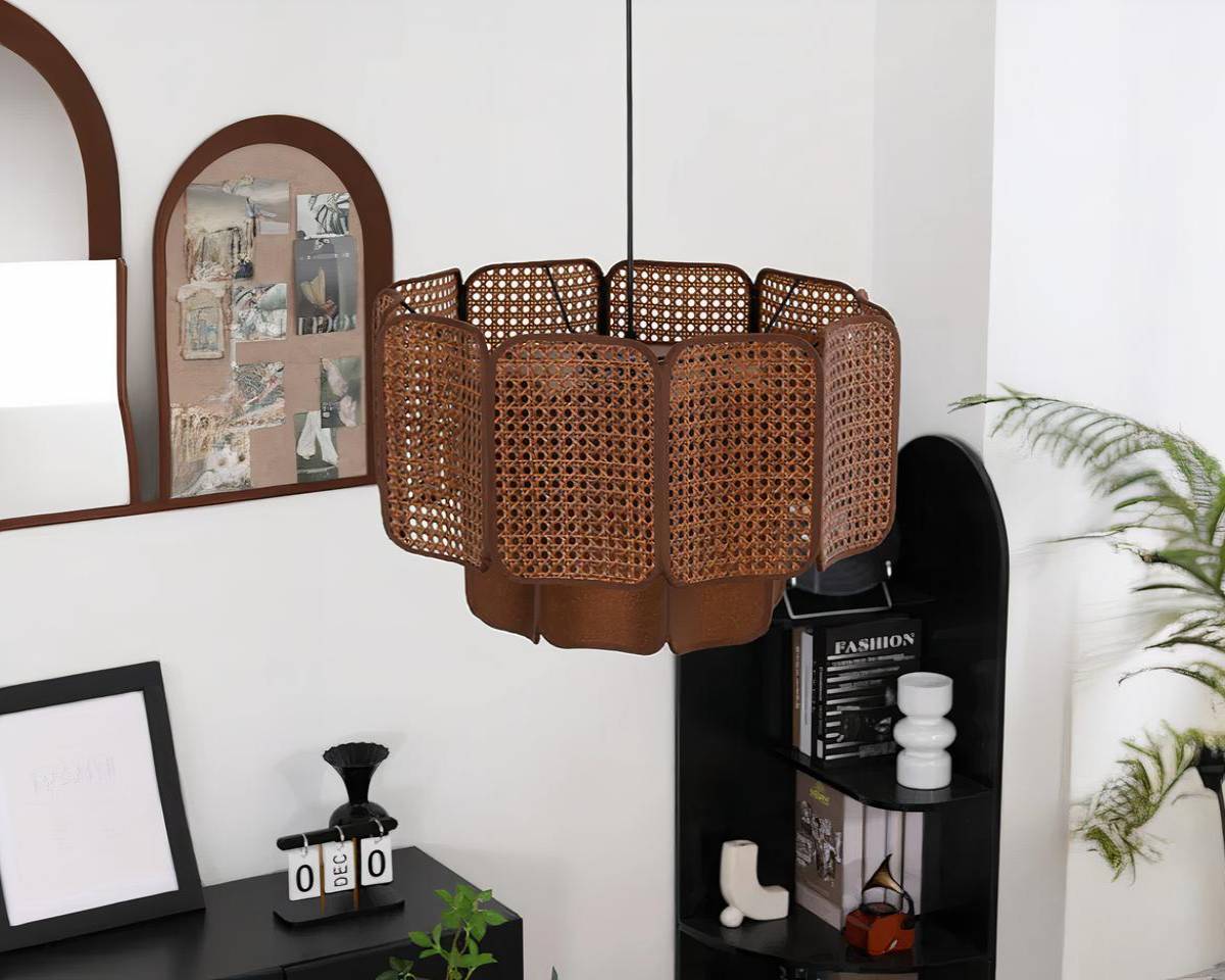 Cette suspension marron se fond harmonieusement dans n'importe quel décor grâce à ses teintes neutres et naturelles. Que votre intérieur soit scandinave, minimaliste ou rustique, cette suspension en rotin tressé apporte une touche d’élégance simple, mais sophistiquée, tout en offrant un éclairage chaleureux.