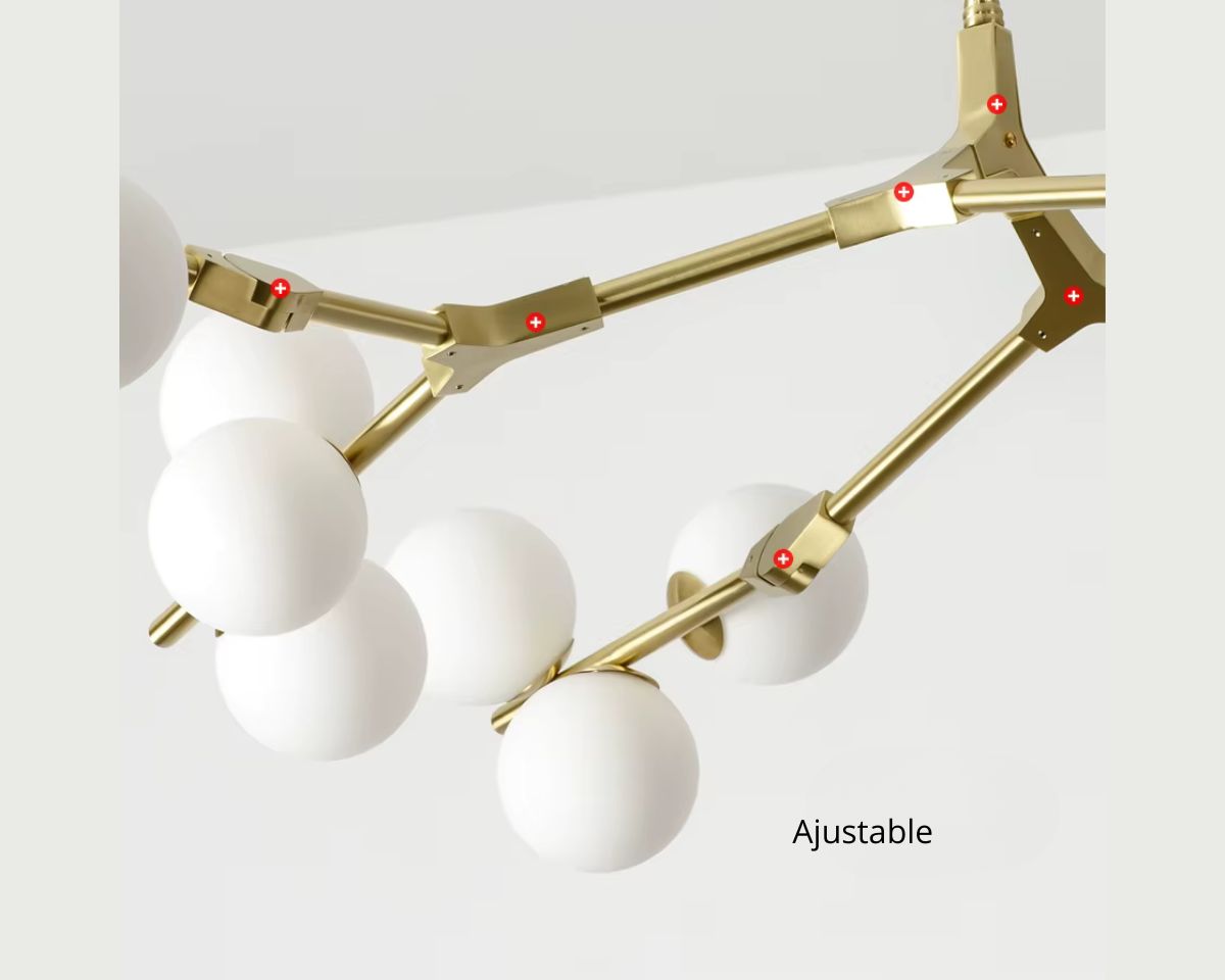 Ses multiples boules garantissent un éclairage homogène qui illumine efficacement votre table à manger ou votre salon. Plus de zones d'ombre : chaque recoin bénéficie d'une clarté optimale tout en douceur. Elle est également ajustable pour diriger la lumière là où vous en avez besoin.