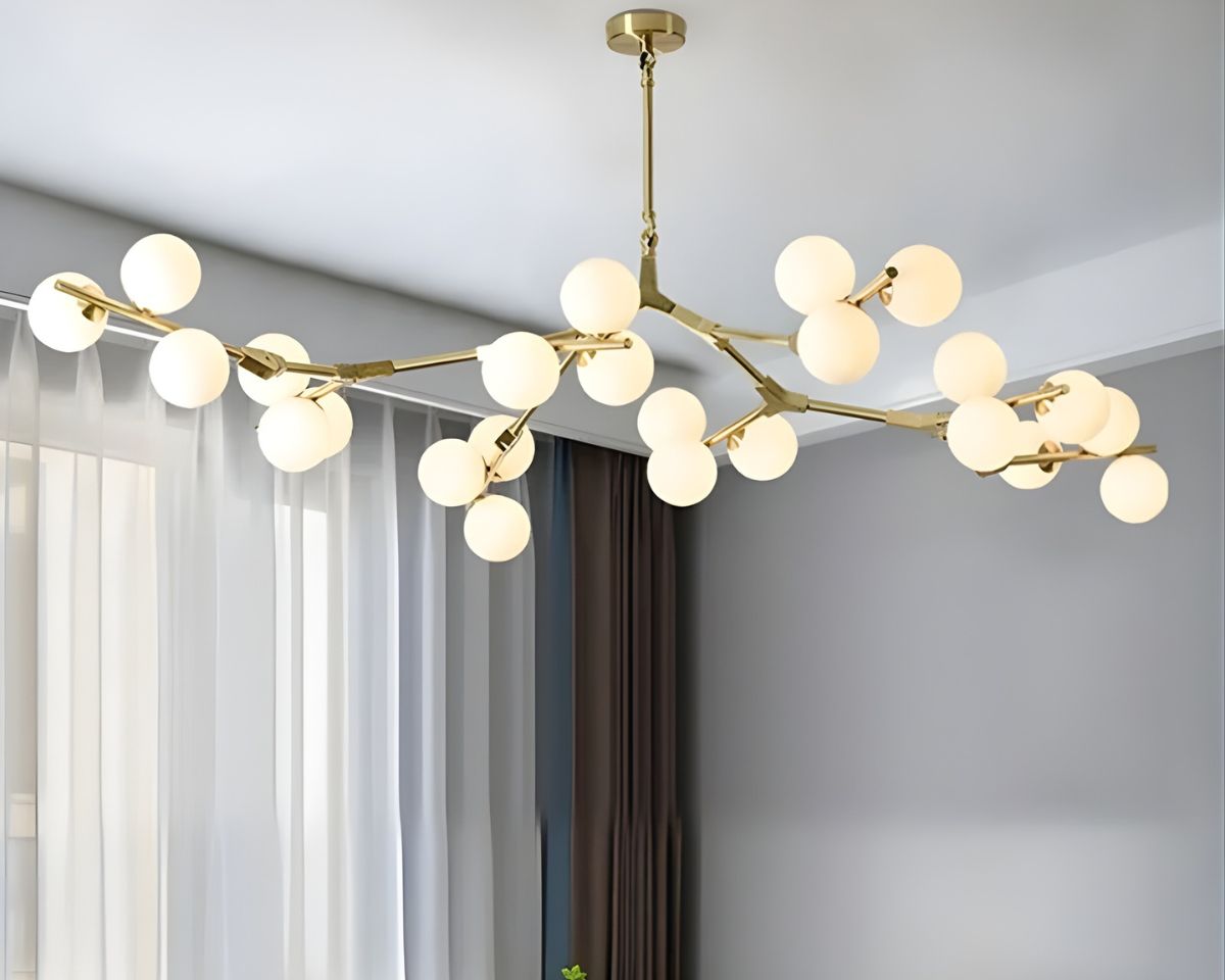 Vous cherchez un luminaire qui devient le point focal de votre pièce ? Cette suspension branche avec boules en verre répond parfaitement à vos attentes !