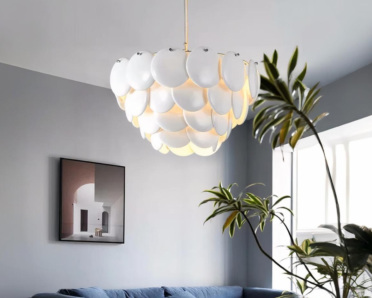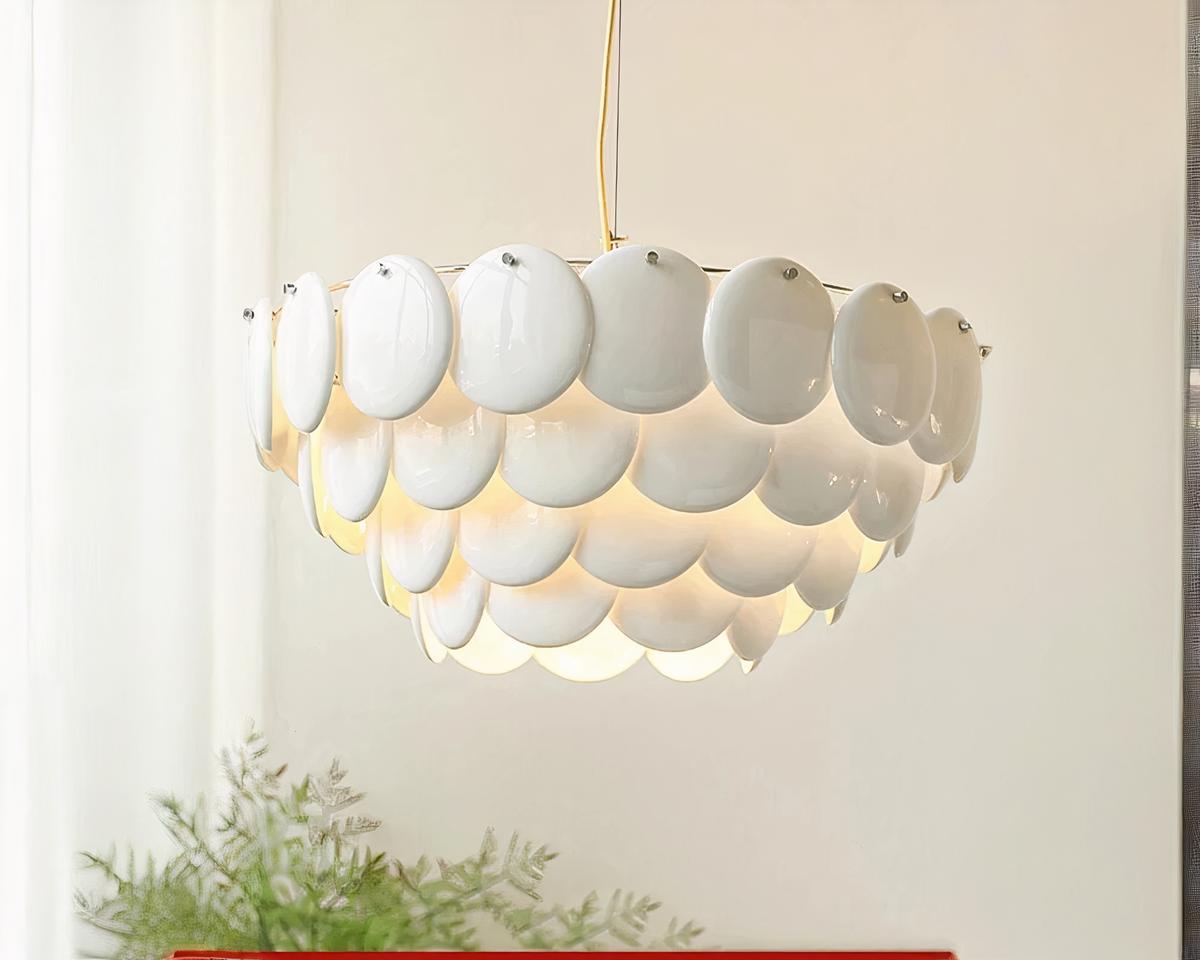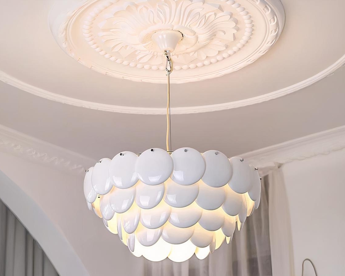 Confectionnée en céramique de haute qualité, cette suspension offre non seulement une esthétique pure et brillante, mais également une durabilité exceptionnelle. La finition impeccable de chaque écaille en céramique blanche donne un aspect lisse et élégant, reflétant la lumière de manière douce et homogène. En plus d’être une pièce maîtresse de votre décoration, ce luminaire diffuse une lumière apaisante qui crée une atmosphère chaleureuse et accueillante.