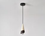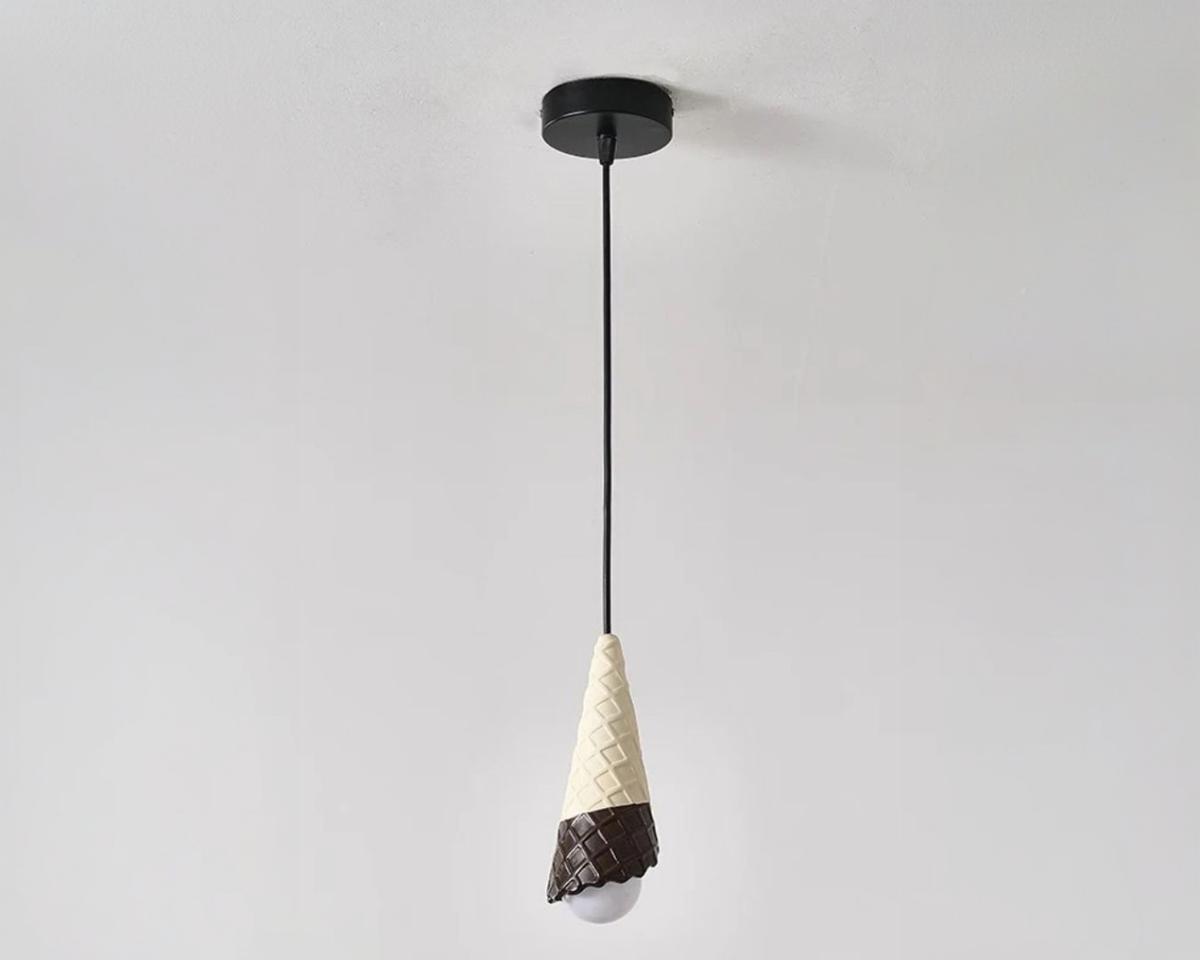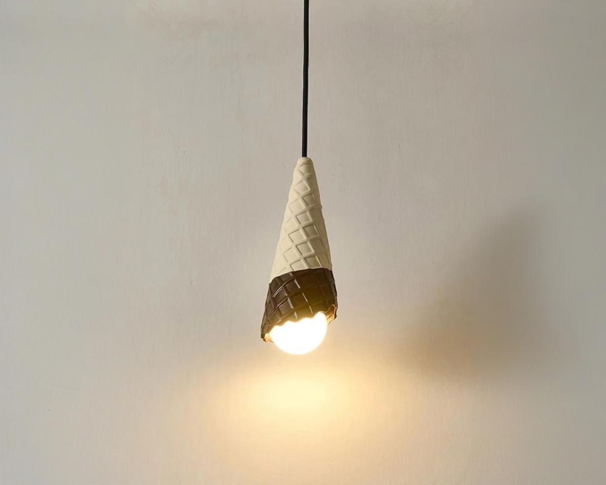 Cette suspension en céramique en forme de glace au chocolat est une œuvre d'art fonctionnelle qui équilibre parfaitement forme et fonction. Son design moderne est idéal pour ceux qui apprécient les pièces décoratives qui sortent de l'ordinaire, offrant à la fois une source de lumière et un point focal artistique.