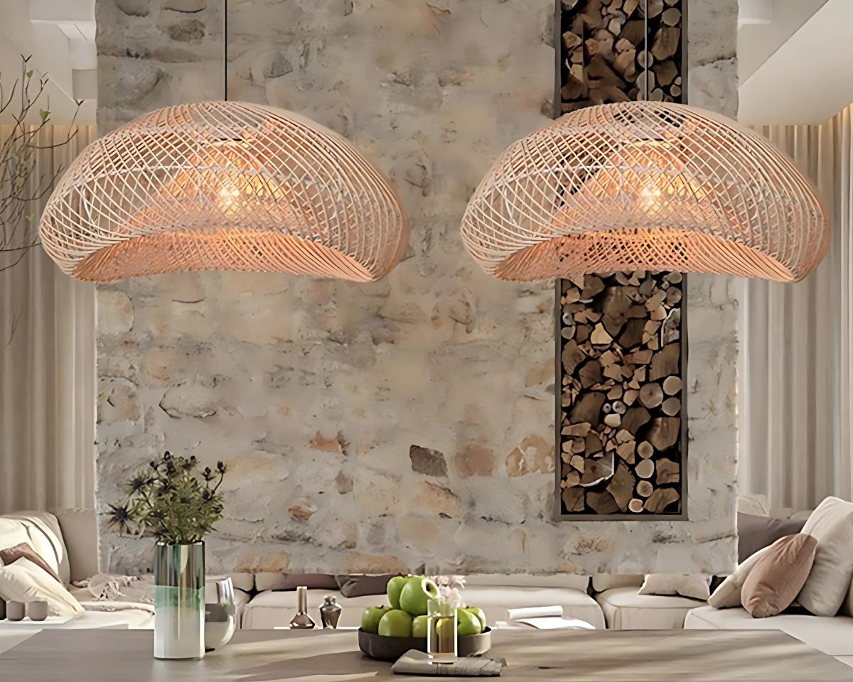 Cette suspension en rotin en forme de champignon fusionne style et fonctionnalité. Elle incarne l'esthétique vintage tout en offrant une lumière douce et accueillante, idéale pour créer une atmosphère détendue dans votre salon, votre cuisine ou votre entrée au quotidien.