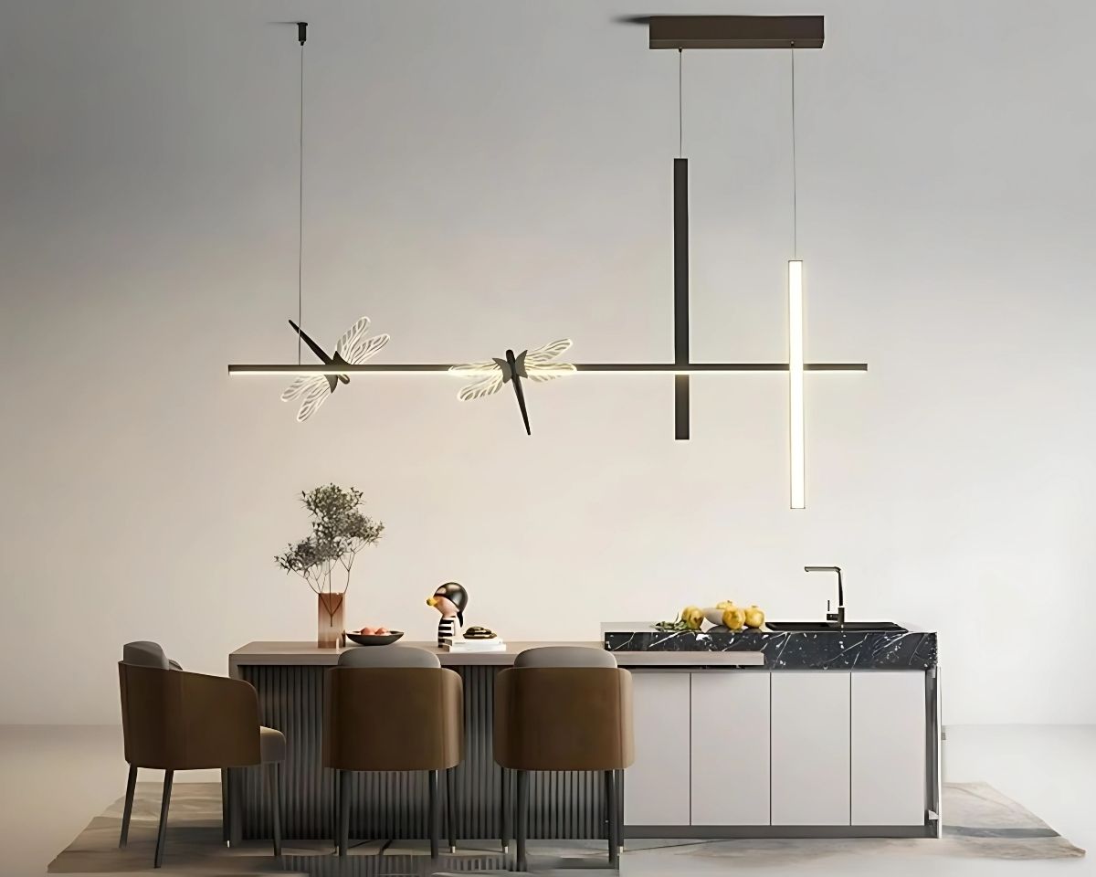 Cette suspension se distingue par ses libellules finement sculptées qui semblent flotter dans l'air, apportant une sensation de légèreté et de mouvement à votre espace. Parfaitement équilibrée, elle capte l'essence de la nature tout en s'intégrant harmonieusement dans un décor moderne. Que ce soit au-dessus d'une table à manger, dans une cuisine ou dans un salon, la Suspension libellule silhouette élégante devient rapidement le centre d'attention, ajoutant une touche de magie et d'élégance à votre intérieur.