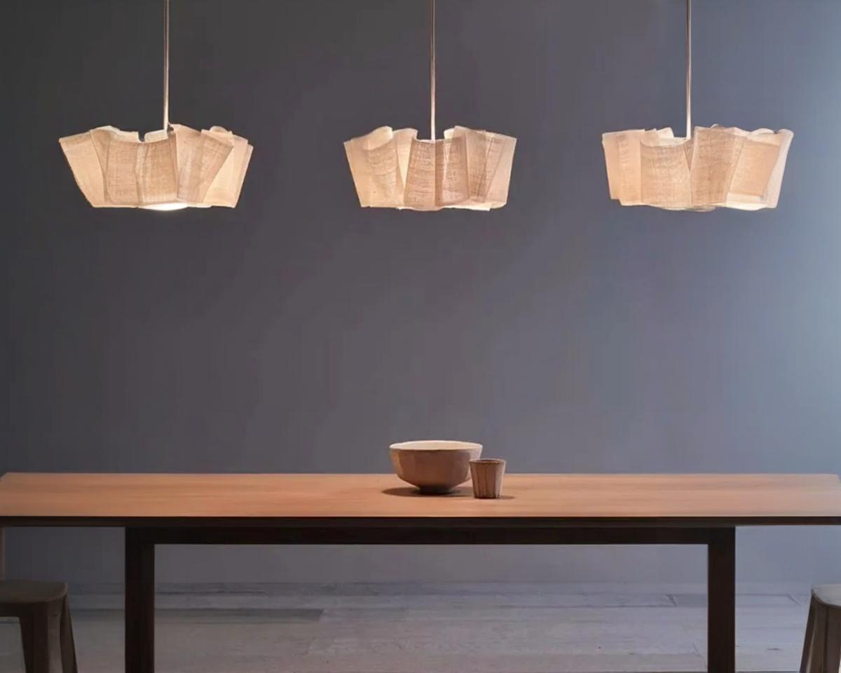 La suspension lin design artistique vintage se distingue par son allure unique, où chaque pli du tissu semble être sculpté à la main, évoquant une couronne ondulée suspendue. Ce design artistique offre une esthétique à la fois raffinée et audacieuse, capable de transformer n'importe quel espace en un lieu empreint de caractère et de style. Idéale pour ceux qui souhaitent intégrer une touche d'art vintage dans leur décoration intérieure.