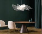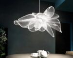 Transformez votre espace avec cette suspension audacieuse et artistique, où le design floral en acrylique blanc se marie avec une structure en fer pour un effet visuel impressionnant. Idéale pour les environnements qui valorisent l'art dans la fonctionnalité, elle offre une lumière qui embellit tout en captivant le regard.
