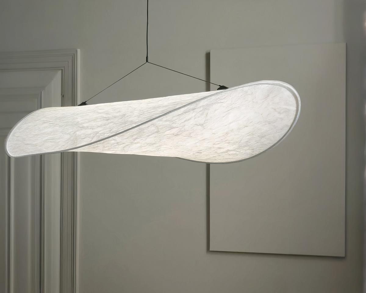 Cette suspension LED n'est pas seulement un objet d'éclairage, c'est une pièce maîtresse décorative qui captivera les regards. Sa forme unique en pétale et sa construction en papier et métal en font un excellent choix pour ceux qui cherchent à combiner l'art et la praticité dans leurs aménagements intérieurs.
