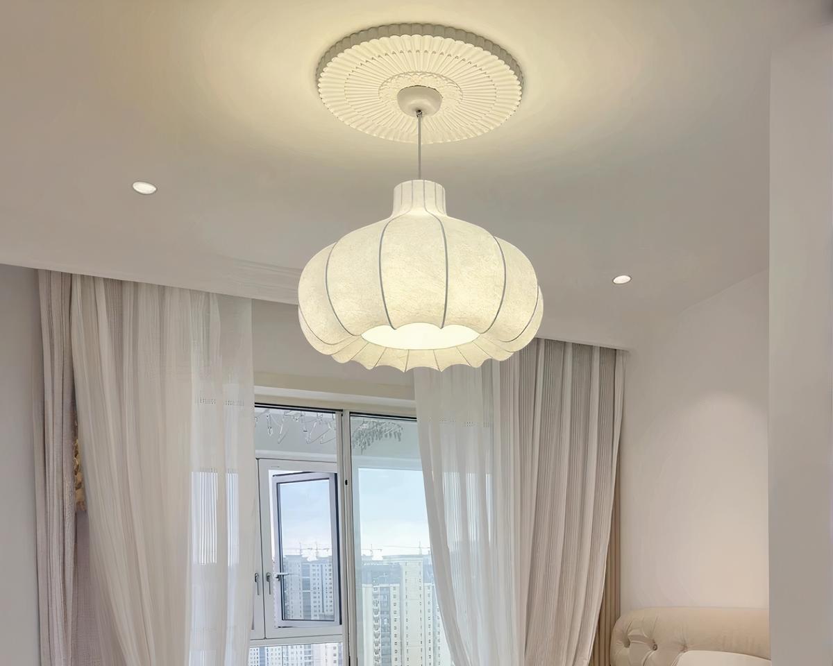 Cette suspension, oรน la soie blanche se marie harmonieusement avec des dรฉtails mรฉtalliques, reprรฉsente l'essence mรชme du design scandinave. Elle diffuse une lumiรจre tamisรฉe qui transforme chaque piรจce en un lieu de dรฉtente et de bien-รชtre, parfait pour ceux qui recherchent la sรฉrรฉnitรฉ dans leur dรฉcoration.