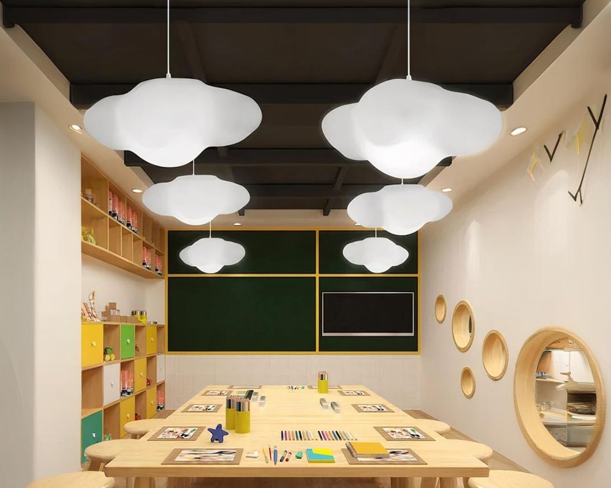Cette suspension en forme de nuage blanc incarne la pureté et la simplicité avec son design charmant et minimaliste. Elle s'intègre harmonieusement dans tout type de décor, apportant une lumière douce et accueillante qui transforme l'espace en un havre de paix.