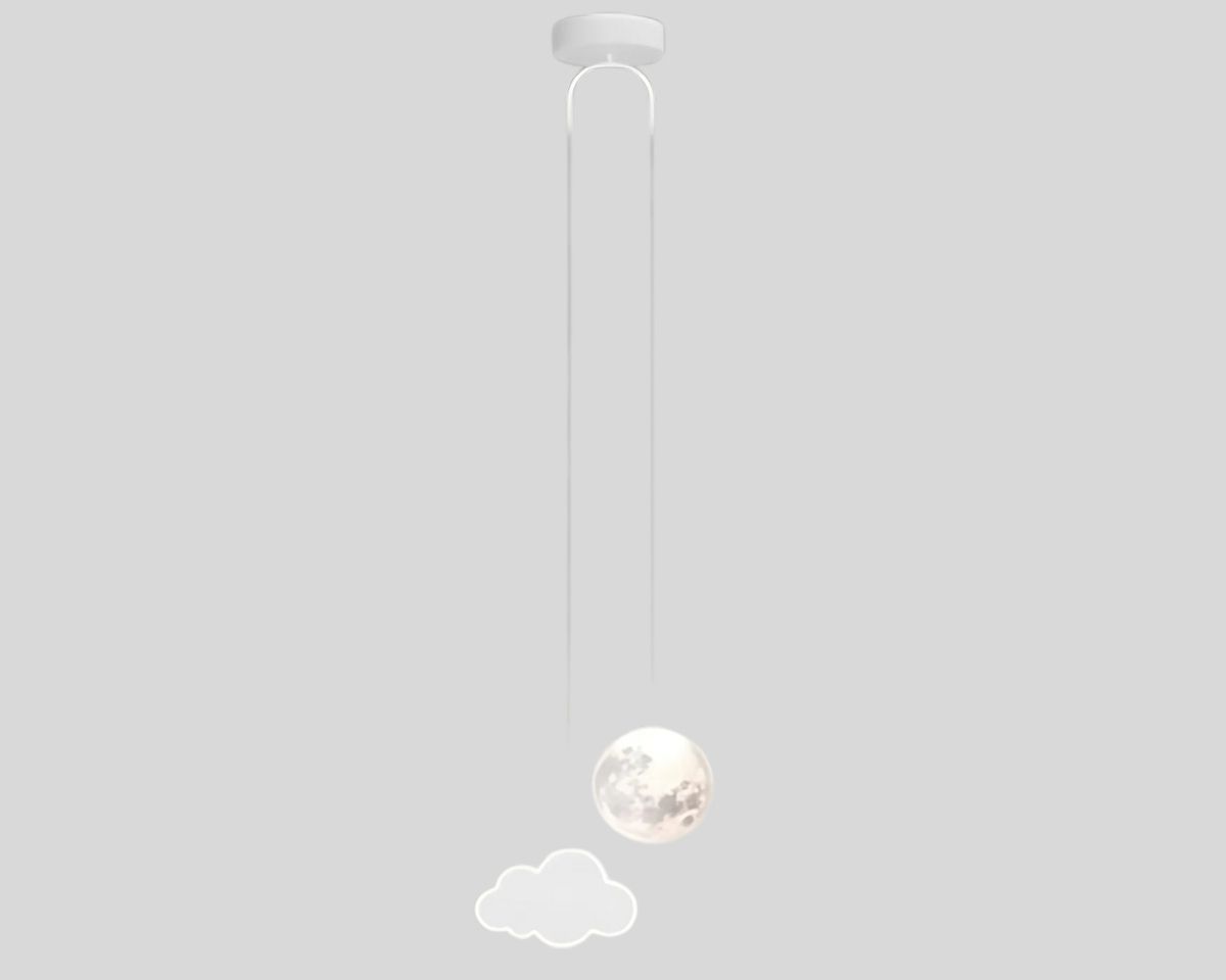 Intégrez un élément lumineux qui transcende le style ordinaire avec cette suspension créative. La présence de la lune à côté du nuage en fer blanc apporte une dimension cosmique et poétique, parfaite pour ceux qui cherchent à fusionner art, fonction et design moderne.