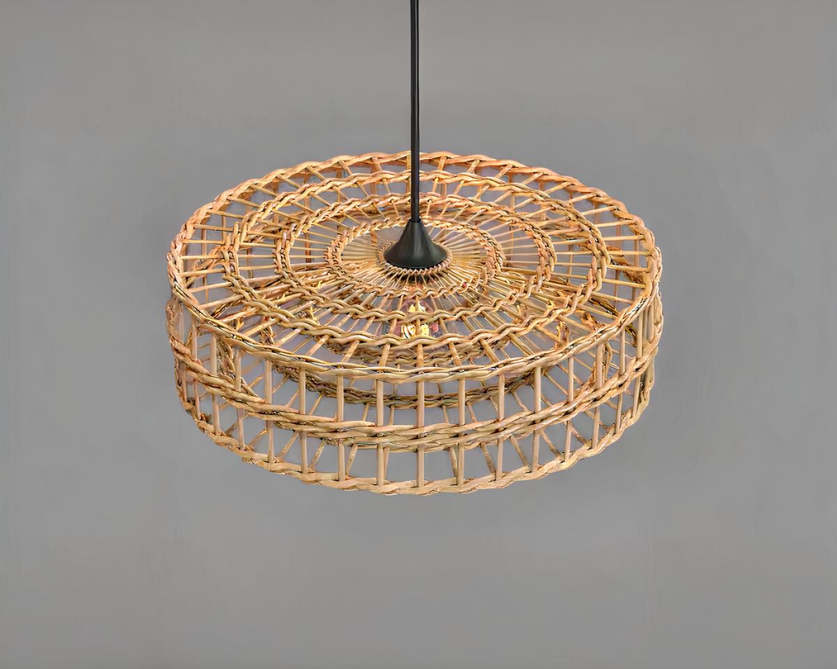 La suspension osier ronde et élégante se distingue par sa forme circulaire et son tressage en osier naturel, qui évoquent un style rétro tout en restant intemporel. Son design épuré s'intègre parfaitement dans divers environnements, qu'ils soient modernes, vintage ou éclectiques. Le tressage ouvert de l'osier permet une diffusion uniforme de la lumière, créant une atmosphère apaisante et agréable dans la pièce. Idéale, cette suspension devient le centre d'attention tout en apportant une touche de douceur et de raffinement.