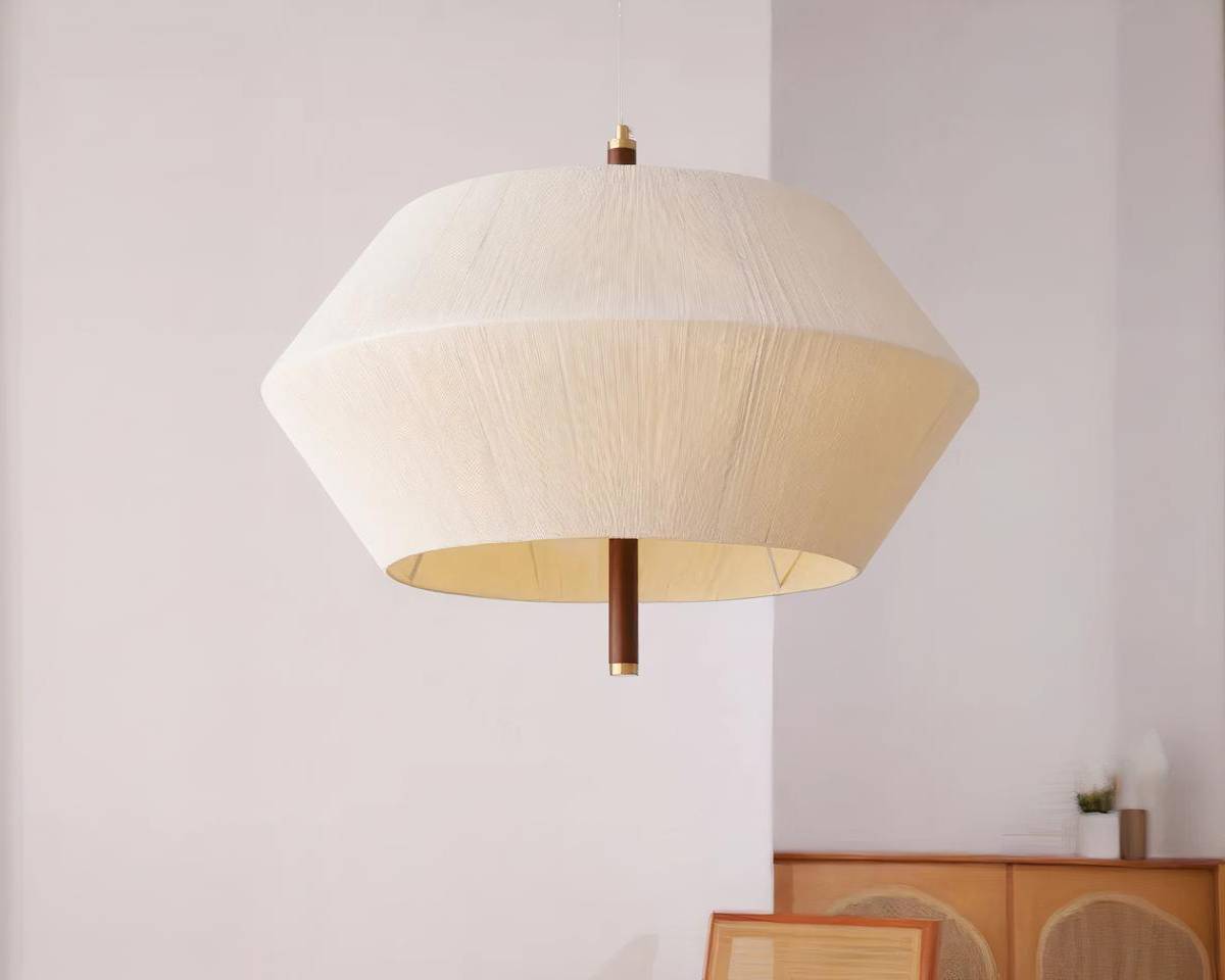 Cette suspension rétro avec sa forme géométrique unique attire immédiatement l'attention, fusionnant l'élégance intemporelle avec une esthétique moderne. Parfaite pour ceux qui apprécient les designs qui sortent de l'ordinaire, elle offre non seulement un éclairage fonctionnel, mais aussi un élément décoratif saisissant. Elle diffuse une lumière douce et accueillante grâce à son abat-jour en tissu, qui tamise l'éclat de l'ampoule tout en créant une ambiance chaleureuse et invitante.