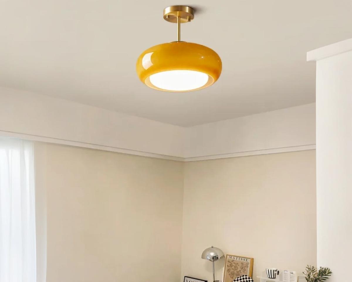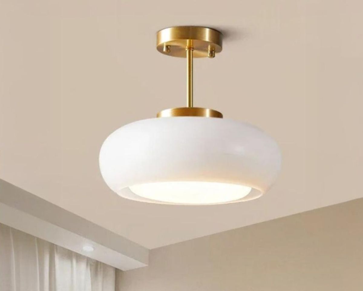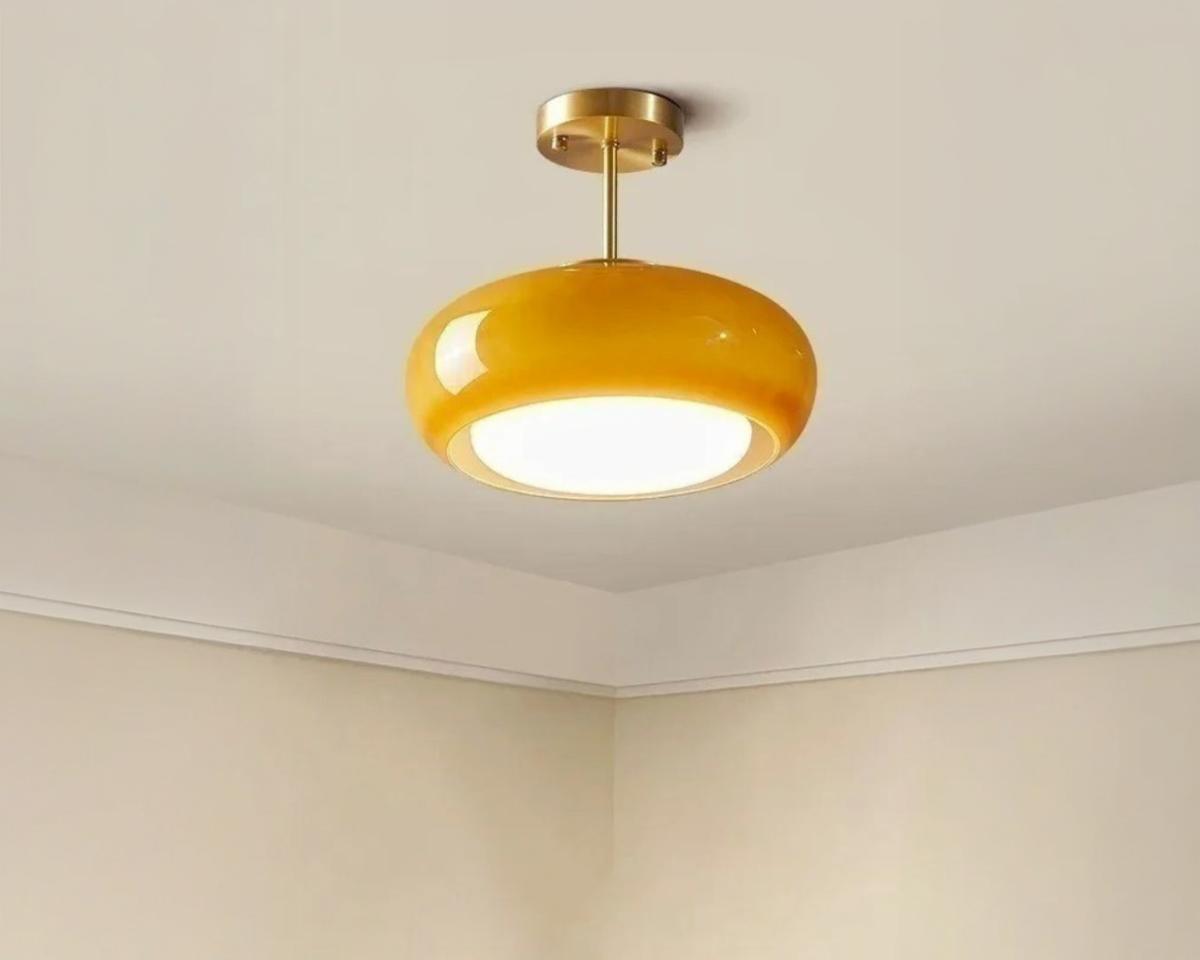 Avec notre suspension rétro en verre style plafonnier vintage, apportez une touche de chaleur et de convivialité à votre intérieur. La lumière tamisée qu'elle diffuse est idéale pour créer une ambiance cosy, parfaite pour des moments de détente ou des soirées en famille. Son design durable assure un éclairage de qualité tout en ajoutant une dimension esthétique à votre espace de vie que ce soit dans le salon ou une chambre.