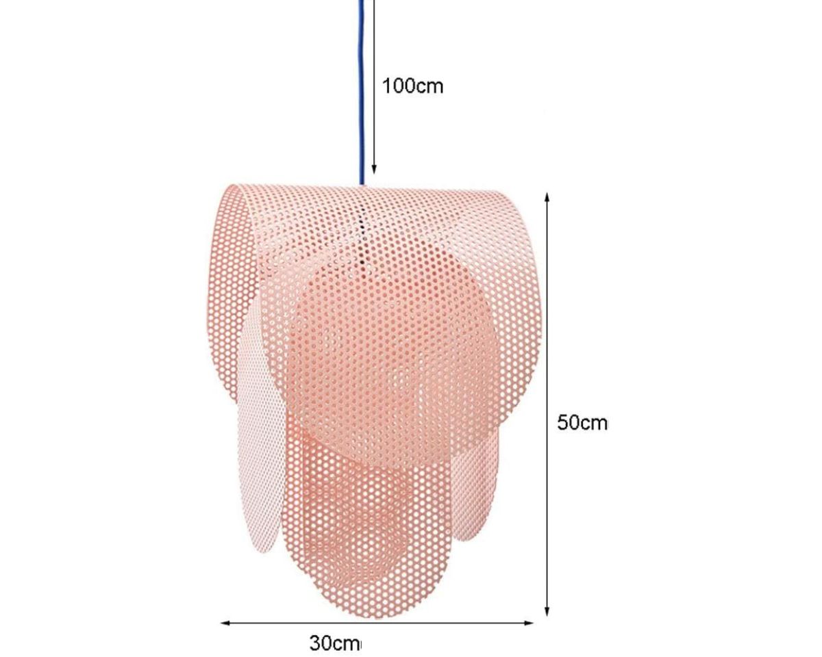 Fabriquée à partir de métal léger mais résistant, la Suspension rose design artistique combine durabilité et élégance. Sa finition rose poudré apporte une dimension visuelle douce et chaleureuse tout en mettant en valeur la robustesse de sa structure. La perforation des panneaux métalliques permet une diffusion subtile de la lumière, créant des motifs d’ombres raffinés qui changent selon l’intensité de l’éclairage, pour une ambiance personnalisée et artistique.