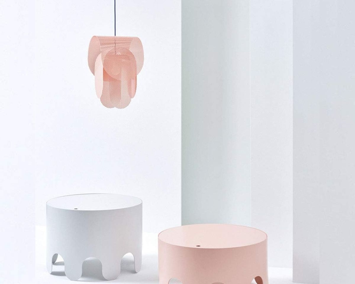 Cette suspension se distingue par son design abstrait et moderne. Composée de panneaux métalliques perforés, elle joue sur les formes et les textures pour offrir une esthétique résolument artistique. Ce luminaire est idéal pour créer un point focal dans votre espace de vie ou de travail, ajoutant une touche de sophistication avec son contraste entre la douceur du rose et l’aspect industriel du métal. Sa capacité à filtrer la lumière crée une ambiance cosy et artistique.