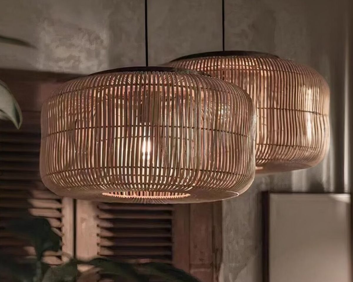 Optez pour cette suspension en rotin pour infuser votre espace avec une lumière douce et un charme rustique. Le travail artisanal met en valeur la texture riche du rotin, tandis que le design global évoque une atmosphère accueillante, idéale pour des espaces comme la cuisine ou la véranda, où une lumière naturelle est recherchée.