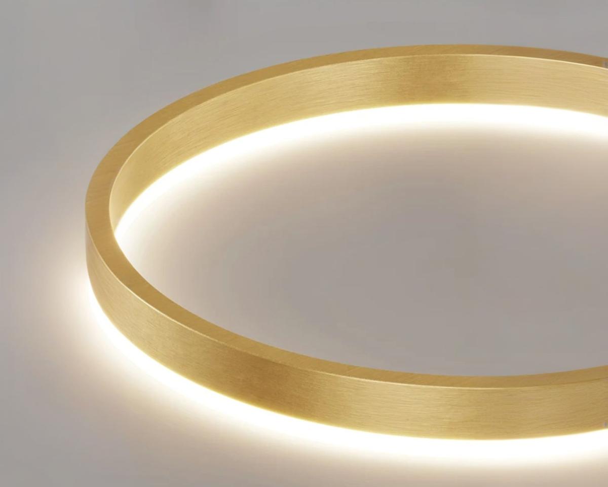 Redéfinissez l'esthétique de votre salon avec cette suspension en forme d'anneau doré. Son design élégant en fer, combiné à une finition luxueuse, offre un éclairage qui non seulement illumine l'espace, mais le transforme également. Parfait pour les décors modernes, cet anneau lumineux crée une ambiance chaleureuse tout en restant un chef-d'œuvre de design.