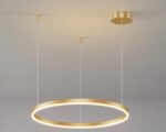Illuminez votre salon avec cette pièce maîtresse en fer doré, dont la forme d'anneau moderne capte immédiatement l'attention. Elle est conçue pour diffuser une lumière douce et enveloppante, idéale pour créer une ambiance invitante et relaxante. Cette suspension combine fonctionnalité et style luxueux, faisant d'elle un élément décoratif remarquable et pratique.