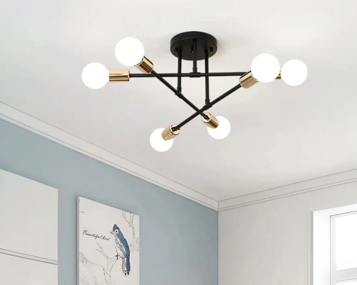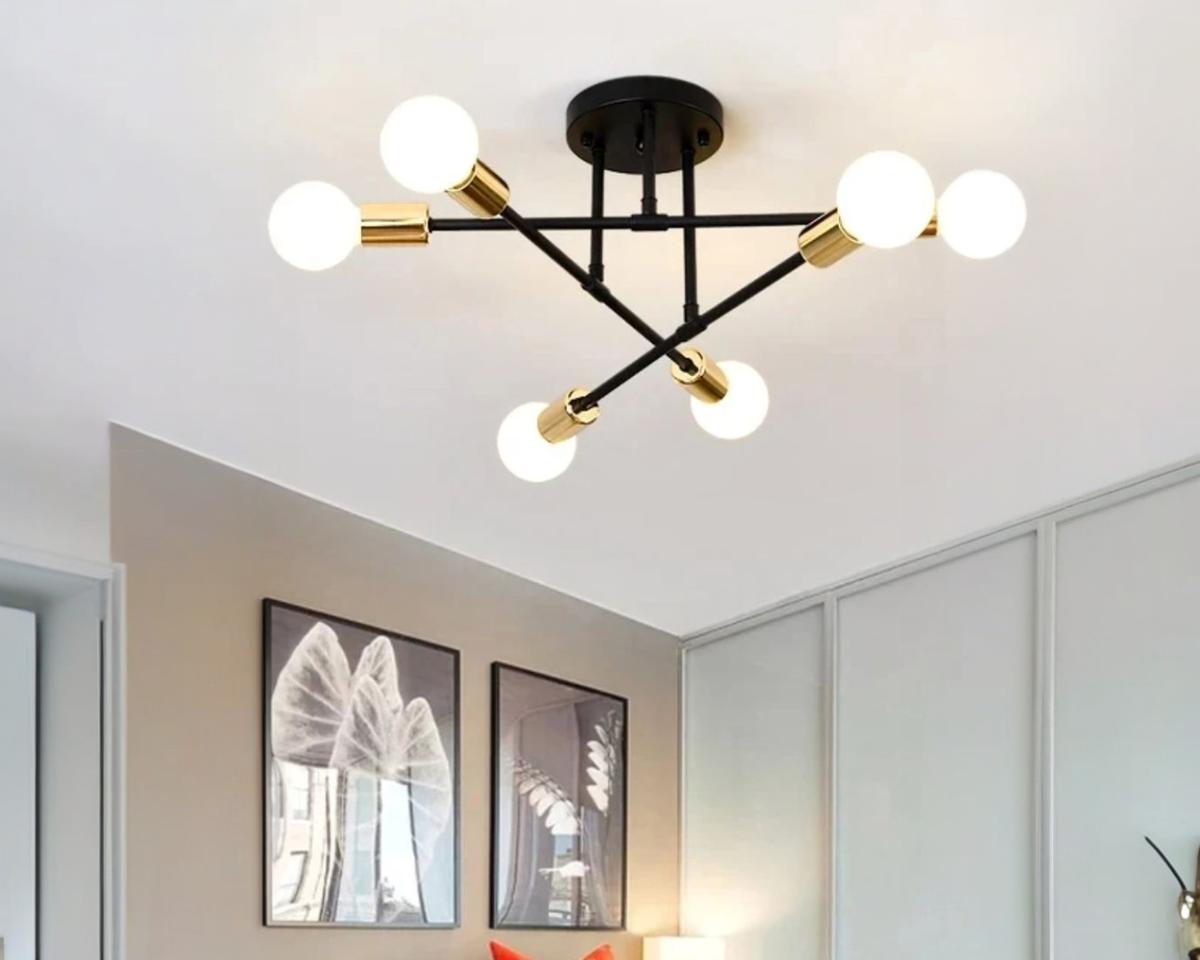 Illuminez votre salon avec style grâce à cette suspension à six ampoules, alliant fonctionnalité et élégance moderne. Les nuances de noir et d'or sur le métal enrichissent l'esthétique de votre espace, offrant une lumière abondante idéale pour éclairer les soirées en famille ou les réunions entre amis. Ce luminaire est un excellent choix pour ceux qui valorisent à la fois le design et l'efficacité lumineuse.