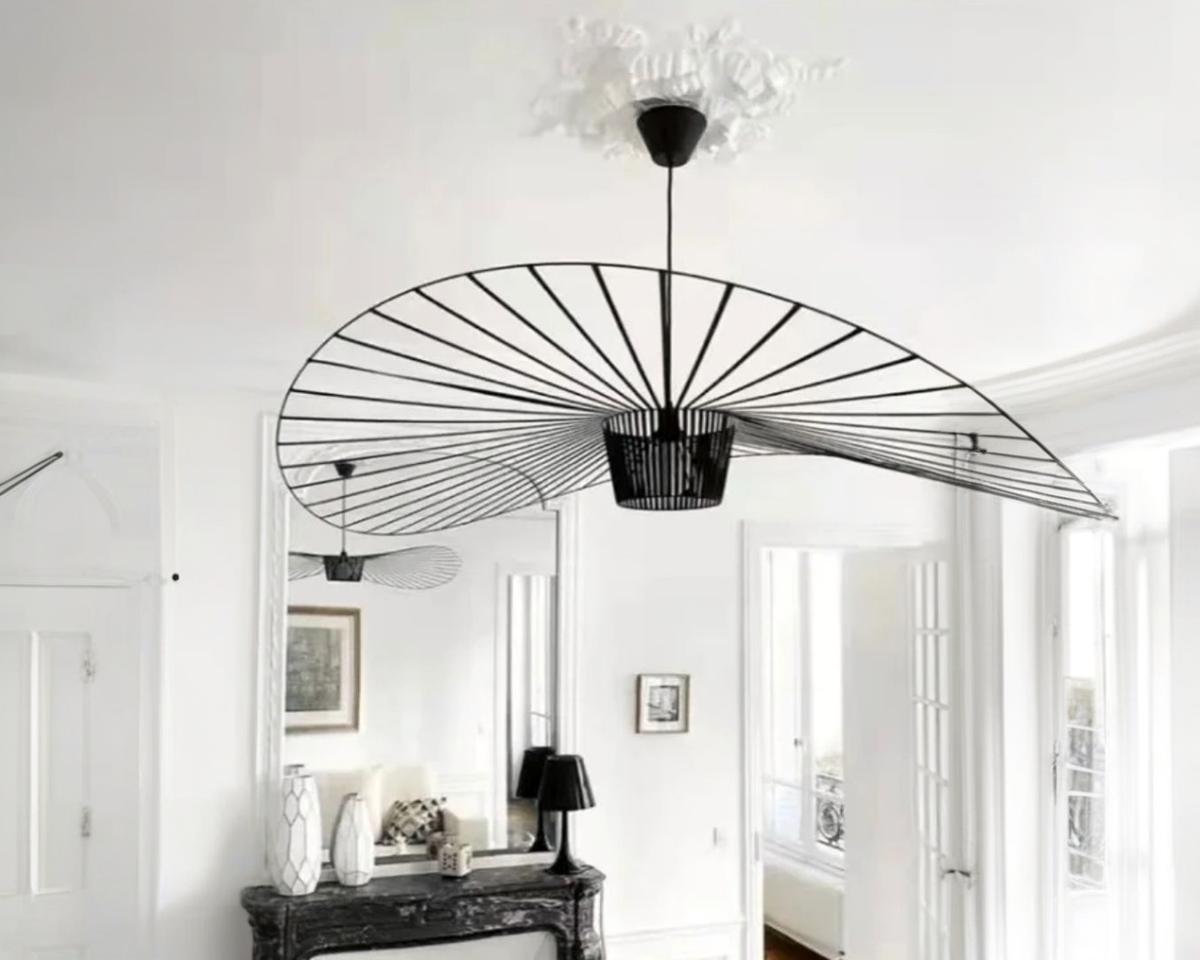 Transformez votre salon avec cette suspension design moderne en fer et verre. Sa couleur noire et sa forme de chapeau apportent un look moderne qui complète n'importe quel décor contemporain, tandis que son ampleur permet une diffusion de lumière à la fois large et agréable. Elle représente le mariage parfait entre forme et fonctionnalité pour les intérieurs chics et modernes.
