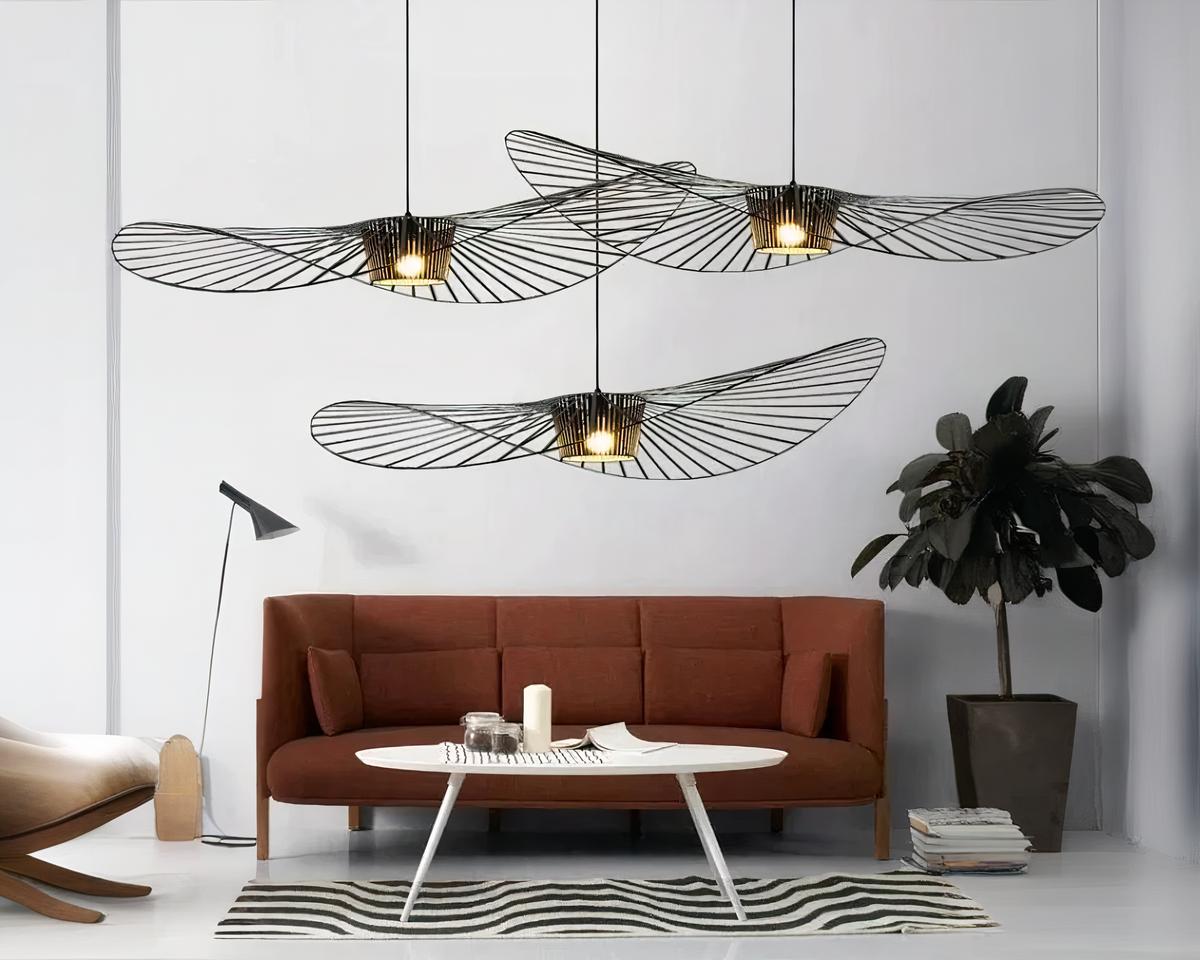 Ajoutez une touche de sophistication à votre salon avec cette suspension moderne en noir. Fabriquée en fer et verre, sa forme de chapeau grandiose non seulement capte l'attention, mais distribue également la lumière de manière efficace et élégante. Cette pièce est idéale pour ceux qui cherchent à combiner design audacieux et fonctionnalité dans leur décor.