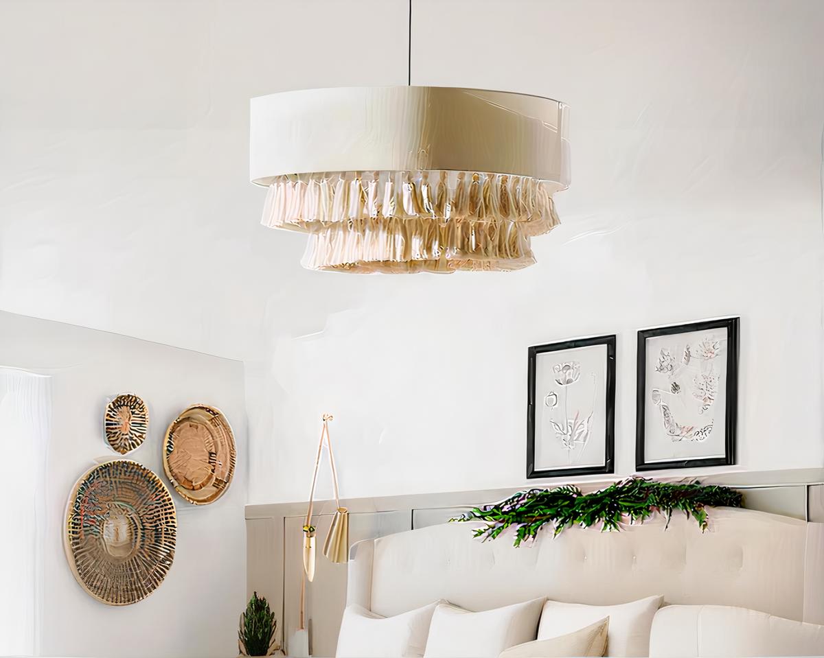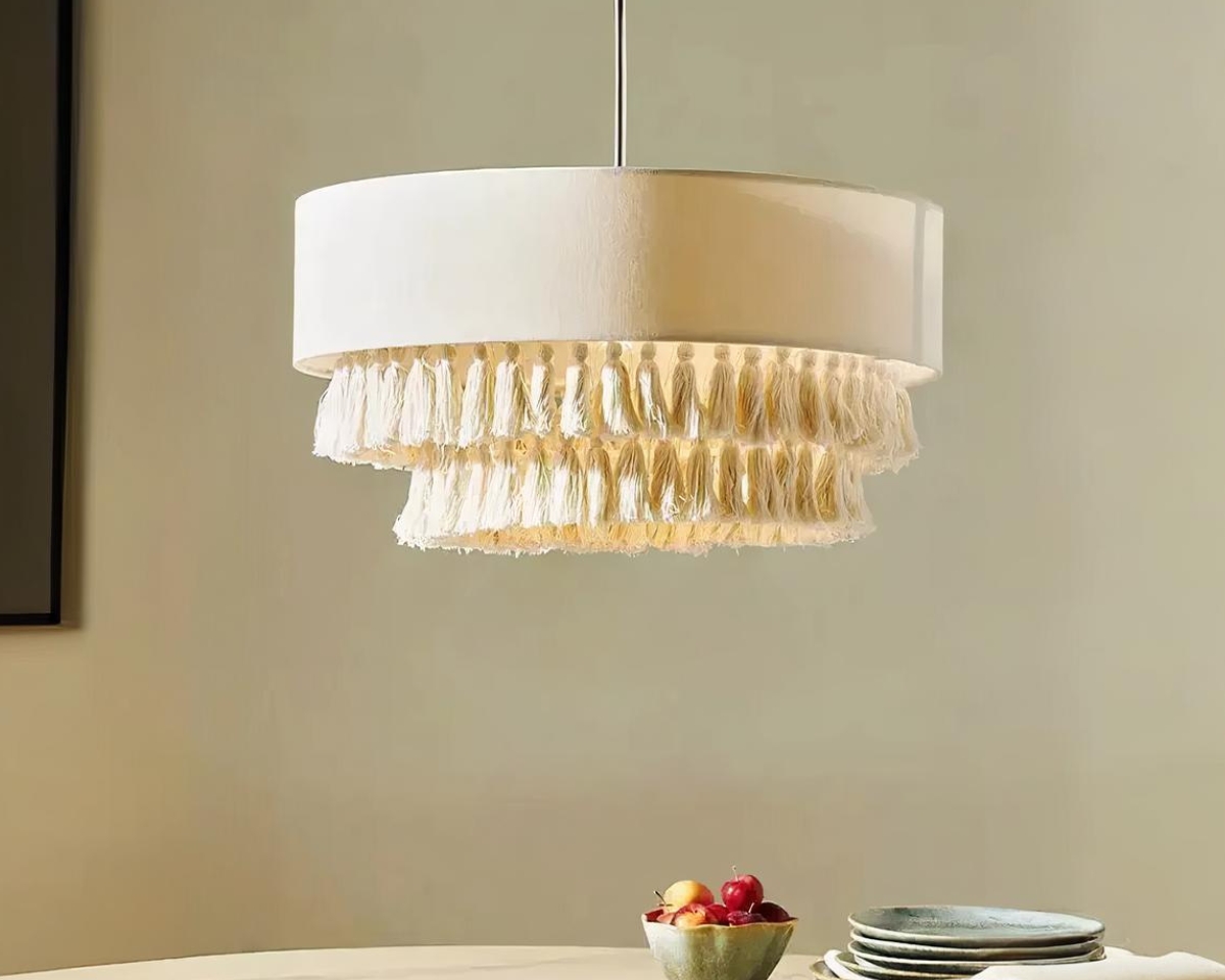 Cette suspension combine la délicatesse des pampilles avec la sobriété du style japonais. La forme de chandelier et les nuances de beige créent une ambiance accueillante et chaleureuse, tout en ajoutant une touche d'élégance à votre espace de vie. Elle est parfaite pour apporter une lumière subtile et décorative.
