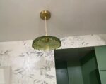 Cette suspension en verre offre une interprétation moderne du design nordique. La combinaison du verre vert et du support en cuivre doré crée une pièce centrale qui est à la fois fonctionnelle et extrêmement décorative. Elle est parfaite pour ceux qui recherchent à intégrer des éléments de design naturel et raffiné dans leurs espaces de vie.