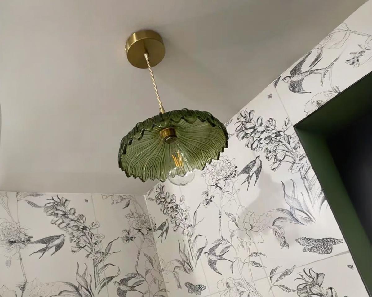 Introduisez une touche de nature et de finesse dans votre décoration avec cette suspension nordique en verre. Le support doré enrichit son allure, apportant un contraste luxueux qui capte le regard. Idéale pour des espaces comme le salon ou la salle à manger, elle diffuse une lumière douce qui met en valeur son environnement avec style et subtilité.
