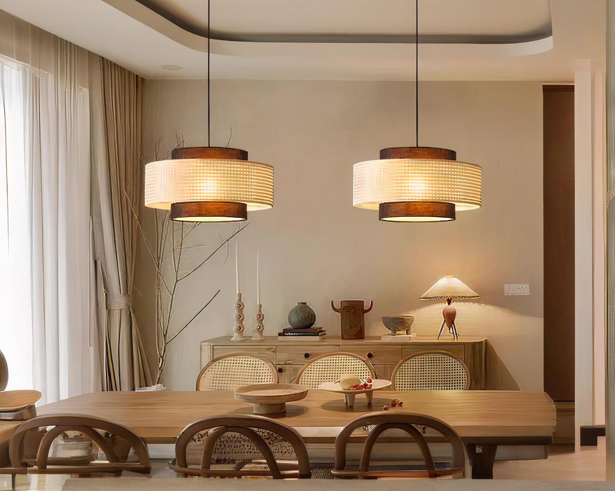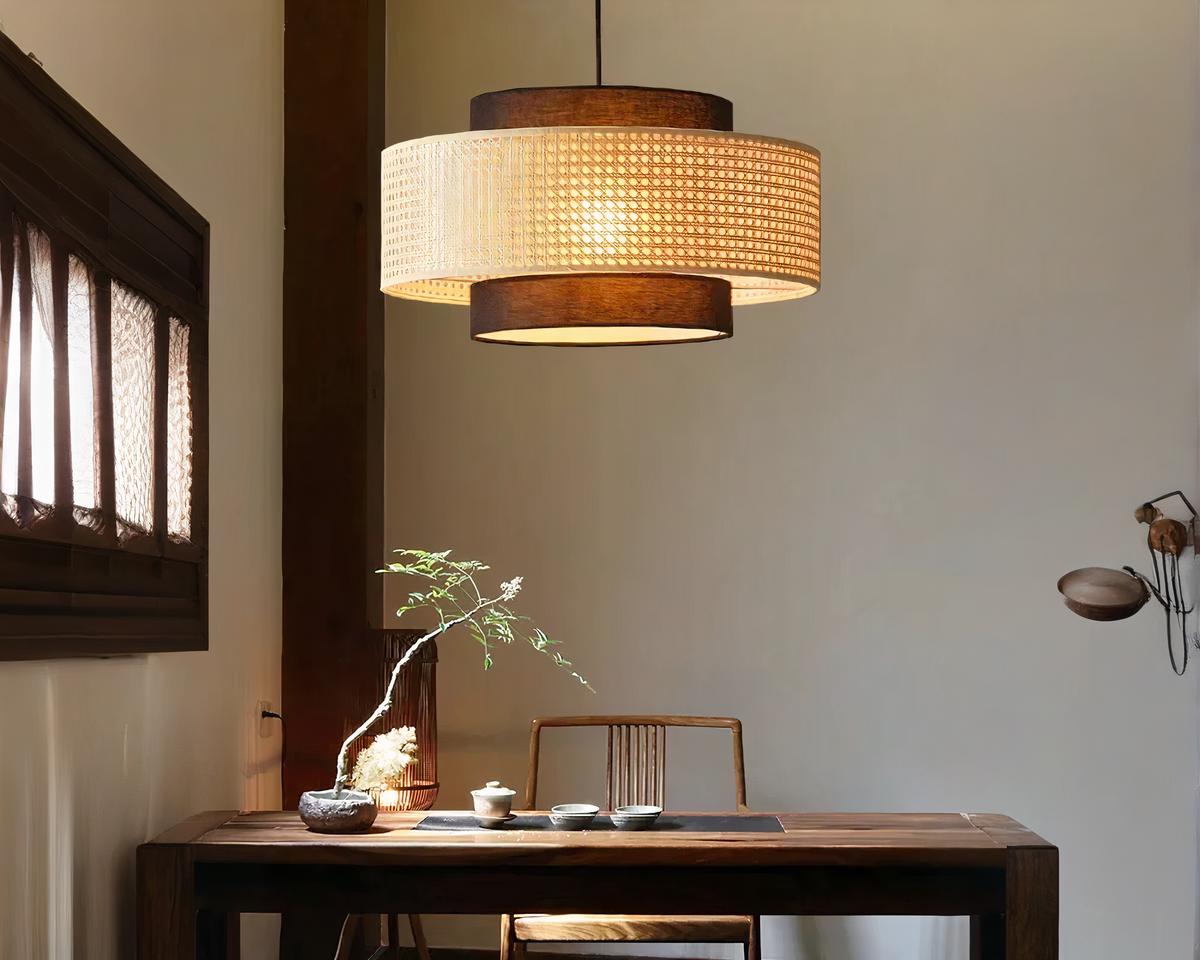 Célébrez l'élégance rustique avec cette suspension luxueuse de style vintage, alliant lin et rotin dans un design captivant. Son style vintage enrichit tout décor moderne ou classique au quotidien, fournissant une ambiance chaleureuse grâce à ses tons de beige et marron.