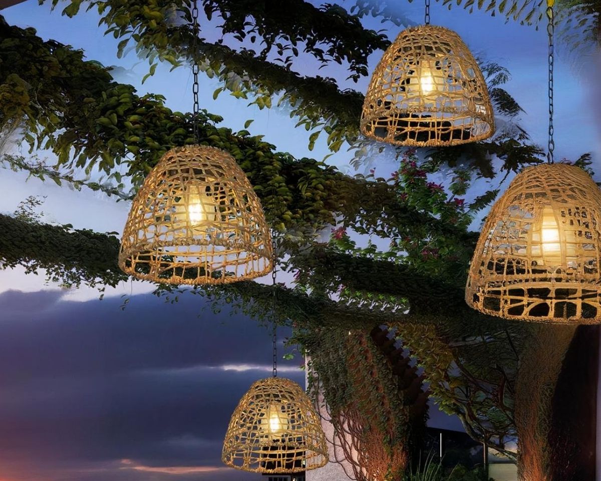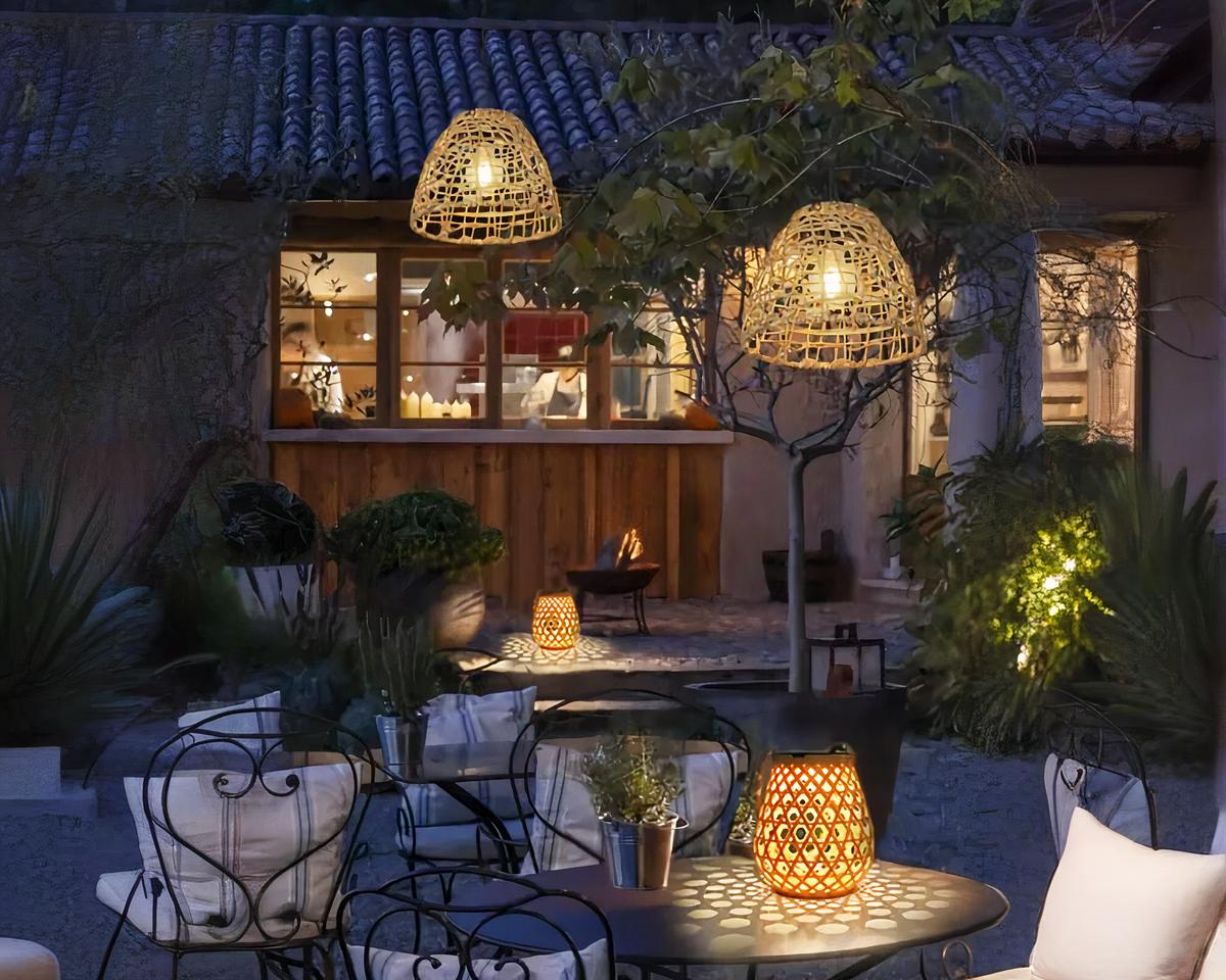 L'éclairage doux et chaleureux émis par cette suspension solaire effet panier retourné instaure une ambiance accueillante, parfaite pour des soirées détendues ou des rassemblements en plein air. Le design en treillis de la suspension projette des motifs d'ombres uniques, créant ainsi un jeu de lumière captivant qui métamorphose tout espace en un environnement féérique et invitant à la tombée de la nuit.